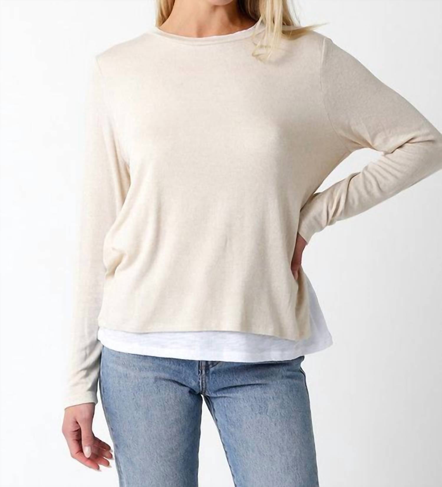 The Kelly Layered Sweater by Olivaceous is a stylish must-have for your spring wardrobe. Featuring long sleeves and a crewneck design, this rayon-blend sweater offers a relaxed fit in a chic natural hue. The fabric composition is 81% Rayon, 15% Wool, and 4% Spandex, providing comfort and warmth. With a pull-on closure, this minimalist piece is perfect for back-to-school occasions.