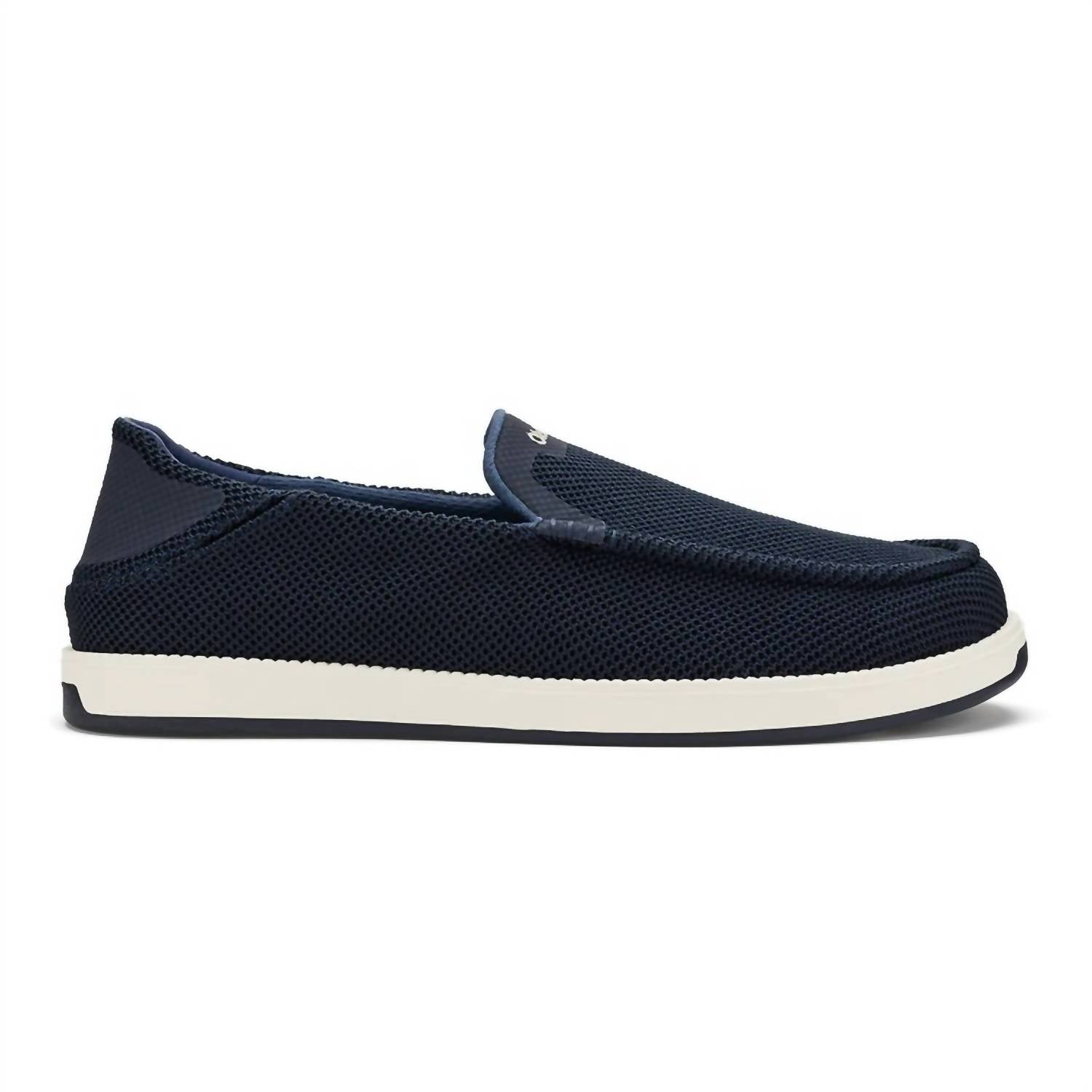 Introducing the Men's Kakaha Mesh Slip-on Shoes by OluKai, a perfect blend of style and functionality in a sophisticated Navy/Navy hue. Embrace breathable comfort with a mesh upper and enjoy the convenience of a slip-on design with flexible side panels for effortless wear. These loafers feature a cushioned, removable, and washable PU footbed, providing long-lasting support and freshness. Crafted with OluKai’s signature craftsmanship and a flat heel, these shoes are ideal for any occasion.