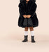 Slightly oversized cut with a notch collar will keep your girl warm when the wind bites. Fully lined with matching color terry. 2 hidden snaps closure. In-seam side pockets. Hits right at the knee. 100% polyester. Dry cleaning or hand wash in cold water. Do not tumble dry.