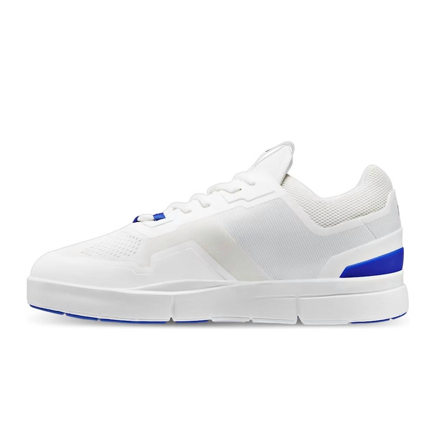 Discover the Men's The Roger Spin Sneaker by On Cloud, a fusion of style and performance in a sleek White Indigo hue. Designed with a breathable engineered mesh upper for ultimate cool comfort, this sneaker features CloudTec® cushioning for superior impact absorption. The updated, anatomically-considered design equips your feet with a TPU-injected Speedboard® to enhance forefoot flex. At a weight of 340.7g, this versatile athleisure sneaker takes you seamlessly from work to workout and beyond.