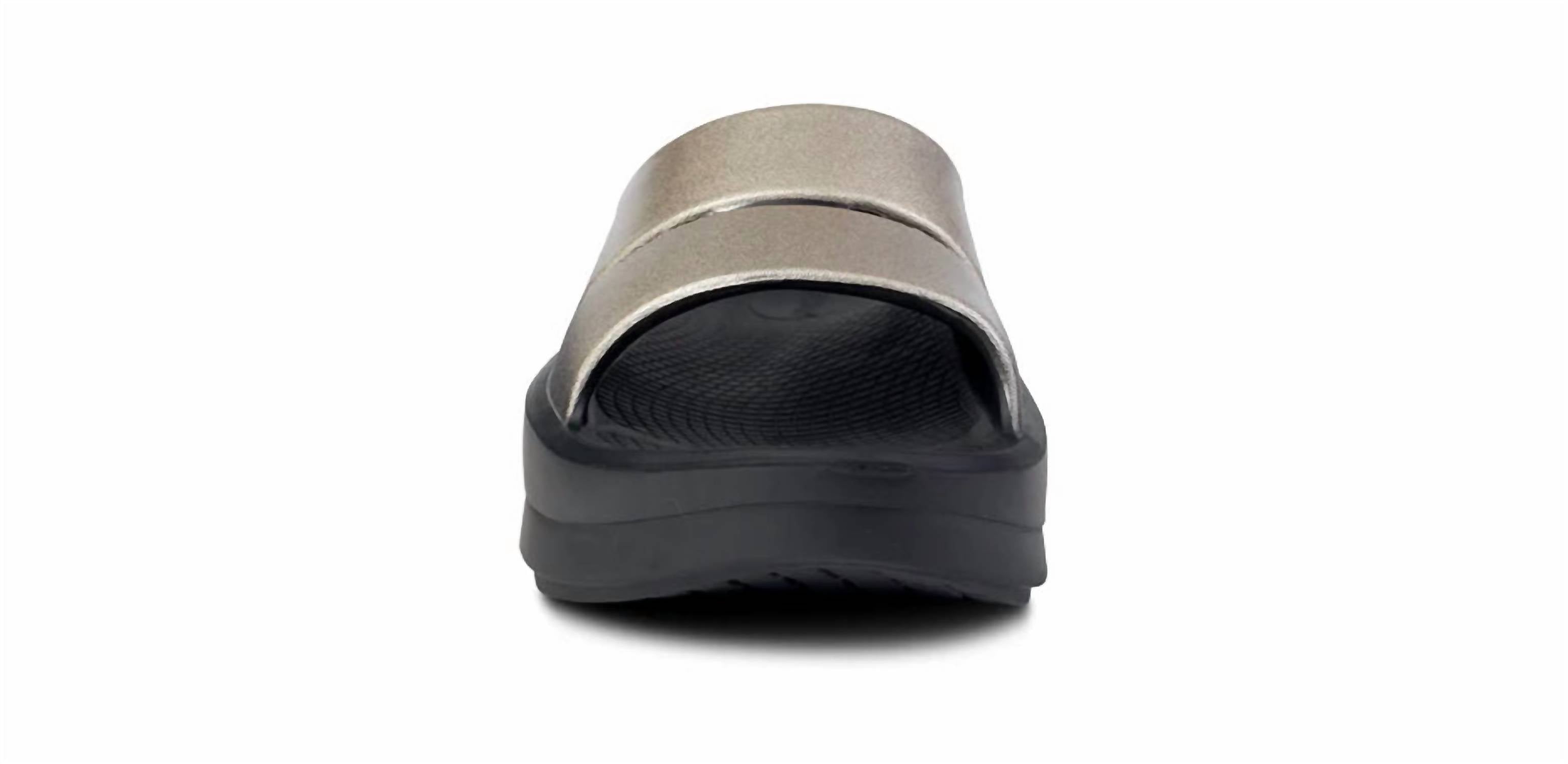 Classicly cute and all-day-wearable. We love this sandal. Step up your style with the Women's Oomega Lux Slide by OOFOS, perfect for trend-setting recovery. Featuring OOfoam™ technology and a patented footbed, these sandals offer an added 15mm of impact-absorbing comfort, making them ideal for both day and night wear. Available in a chic Latte color, they boast a sleek open toe design that's perfect for spring outings or special occasions like Mother's Day. Experience the perfect fusion of fashion and active recovery with this unique piece from OOFOS.