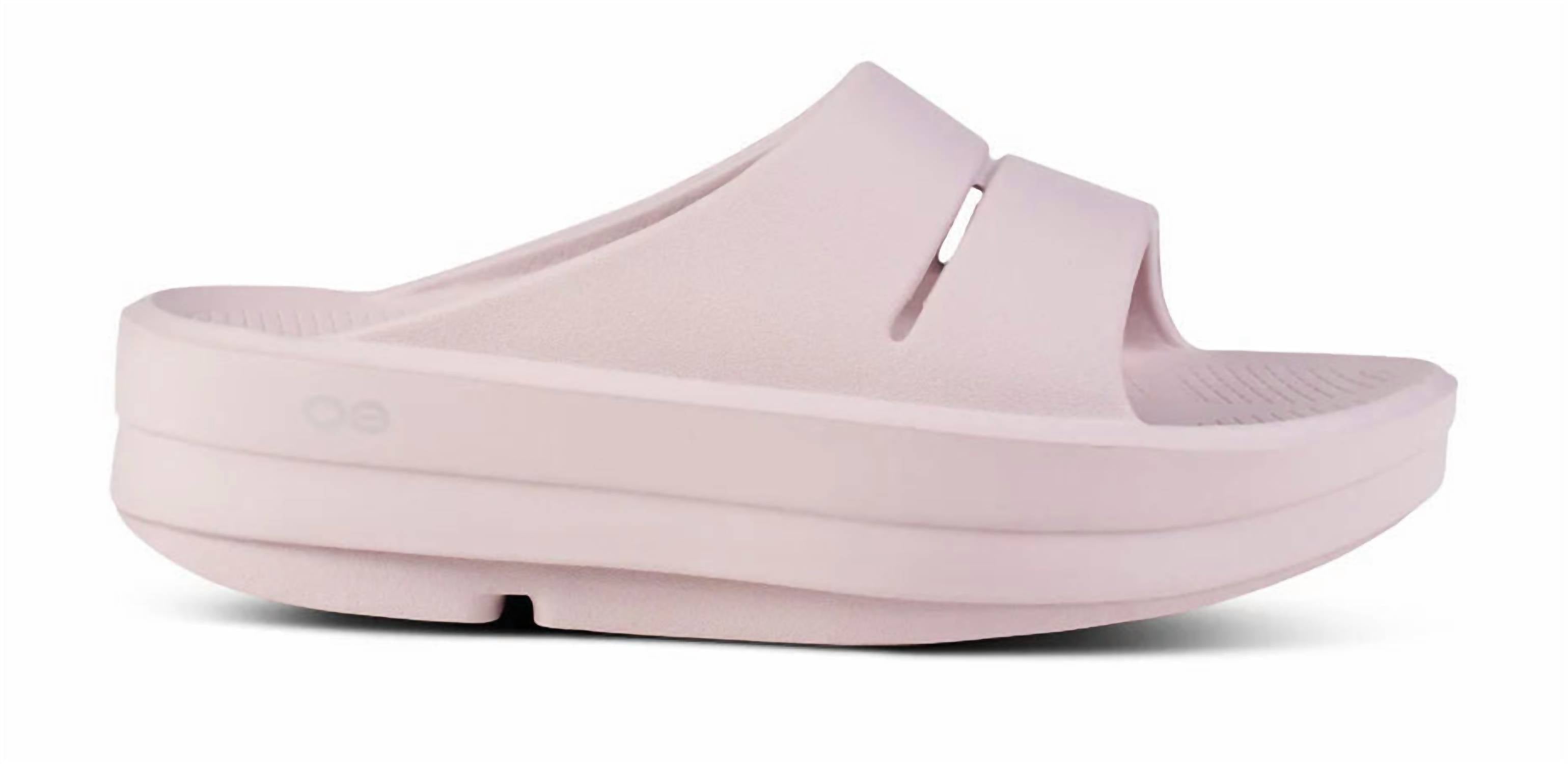Classicly cute and all-day-wearable. We love this sandal. Discover the Women's Oomega Slide by OOFOS, a chic and innovative platform sandal perfect for active recovery. Designed with an open toe shape in a stunning Stardust color, this minimalist sandal incorporates OOfoam™ technology with an impactful MEGA midsole, adding 15mm of cushion. Ideal for summer wear, it offers a trend-setting look for beach days and special occasions like Mother's Day. The OOmega combines fashion and function in a uniquely stylish design only found with OOFOS.