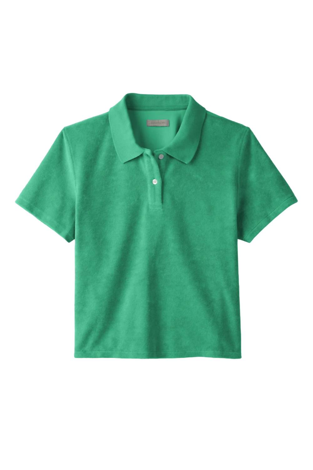 Look no further, you just found your perfect tee!Slightly more relaxed fit. Soft terry with a smooth interior. Rib spread collar, button placket and side vented hem. 22 1/2" body length. Machine wash cold. 57% Recycled polyester, 43% Organic cotton.