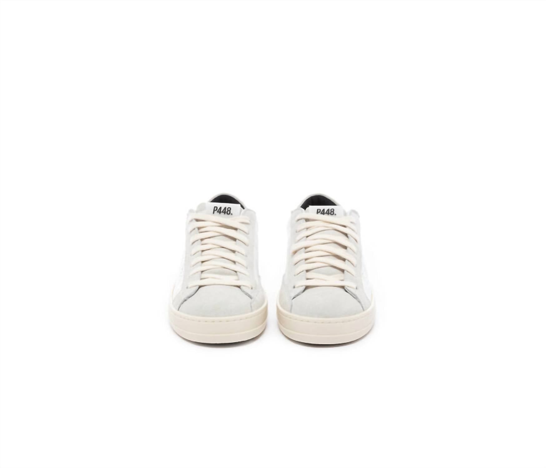 Get your daily steps in with these adorable sneakers. Step into contemporary style with the Women's John Puma Reflex Sneaker by P448, crafted in a sleek white finish. Designed for adults, these sneakers feature a a round toe, ensuring comfort and a chic look. Perfect for casual outings, they combine fashion-forward aesthetics with everyday functionality. Made for those who appreciate minimalist yet distinct footwear.