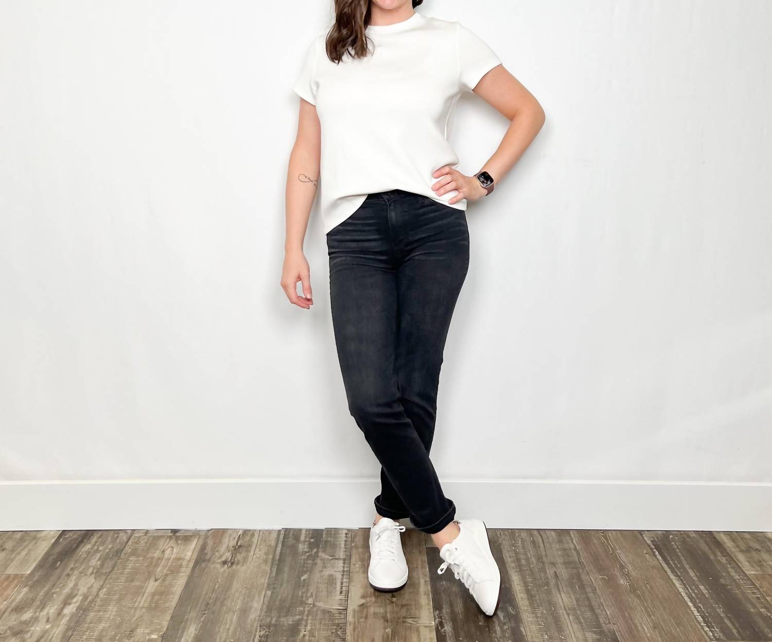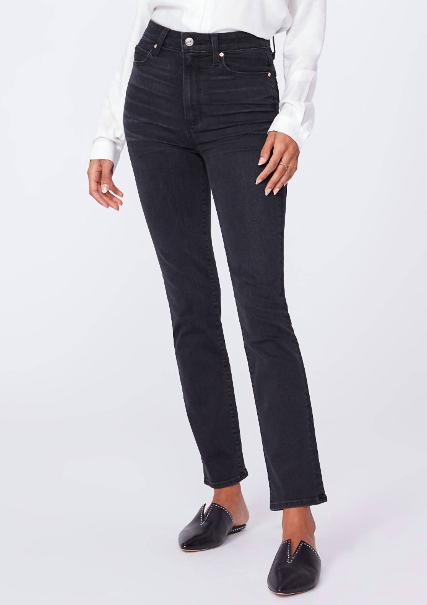This classic straight leg jean has a perfect fit and goes with just about everything. Introducing the Cindy Straight Jeans by Paige, a chic and comfortable choice for every occasion. These high-rise jeans feature a straight leg with a rise of 10.5 inches and an inseam of 28 inches, making them perfect for travel and workwear trends. Crafted from a blend of 64% Cotton, 17% Modal, 17% Polyester, and 2% Elastane, they come in a stylish Black Willow textured finish with a button closure. For care, simply machine wash and line dry these imported jeans to maintain their fit and quality.