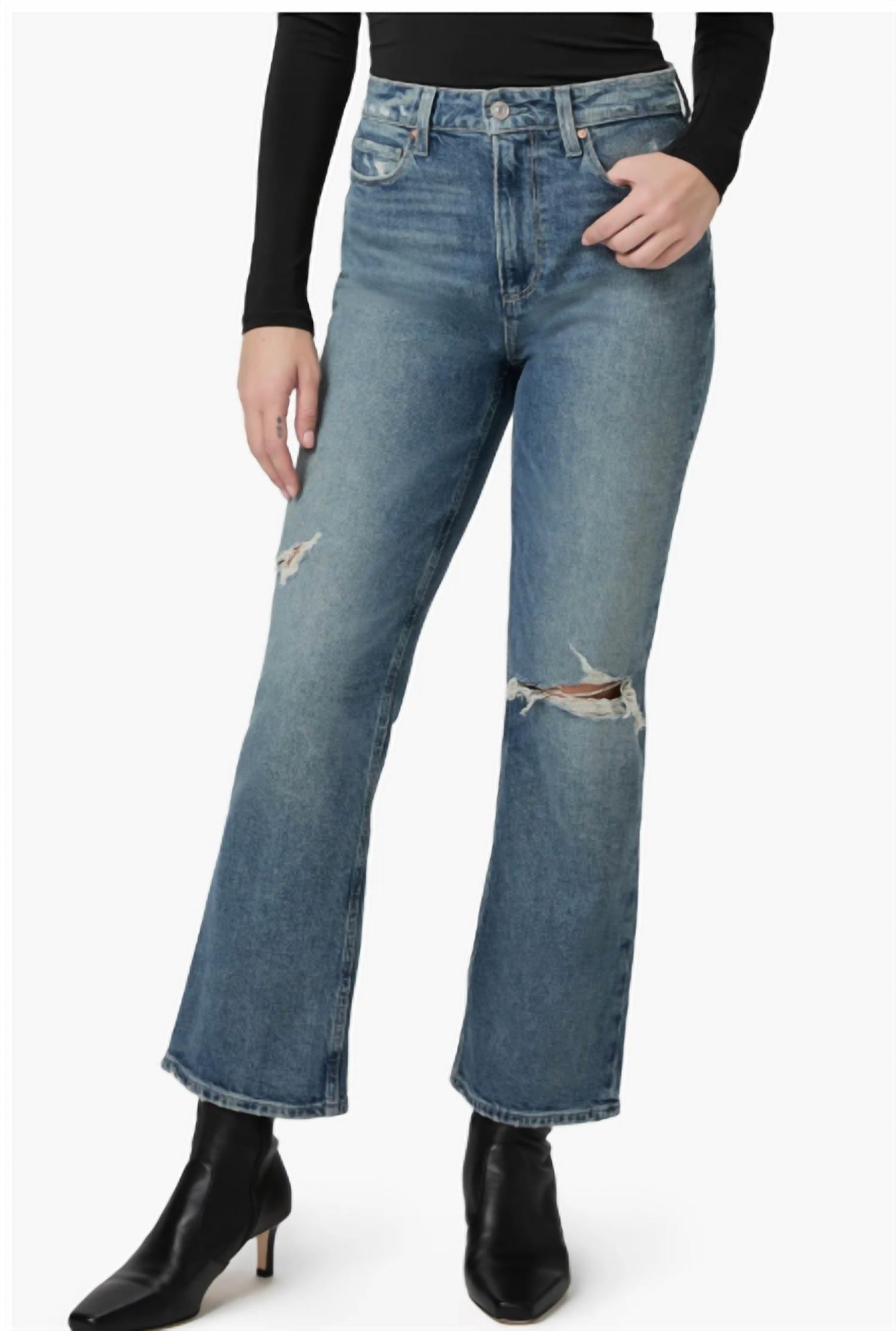 If you're looking for boot-cut, this is the jean for you. A ripped knee and frayed distressing bring lived-in appeal to bootcut jeans crafted with a touch of stretch to ease your movements.
