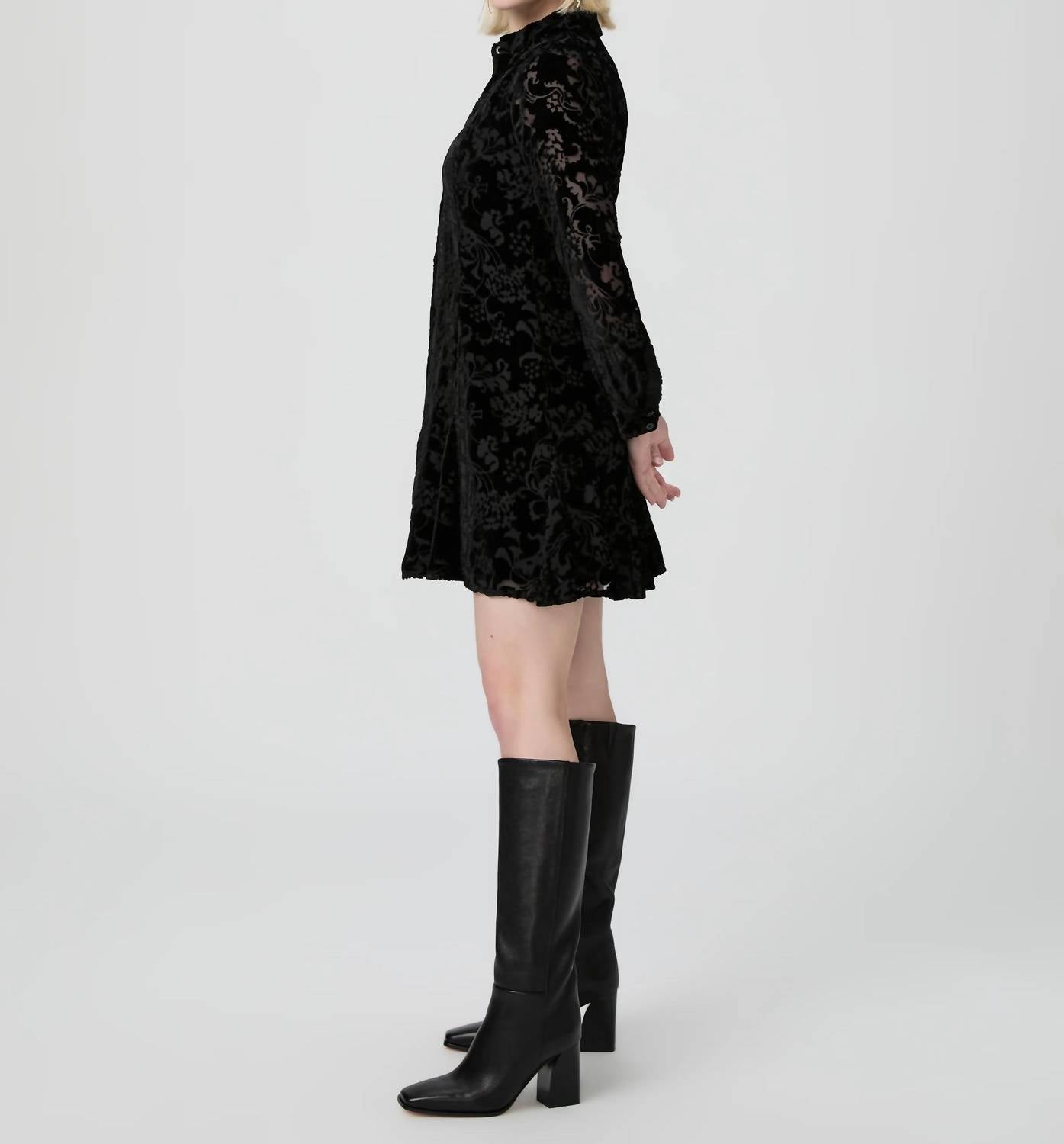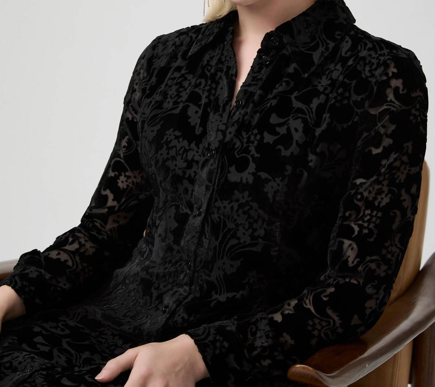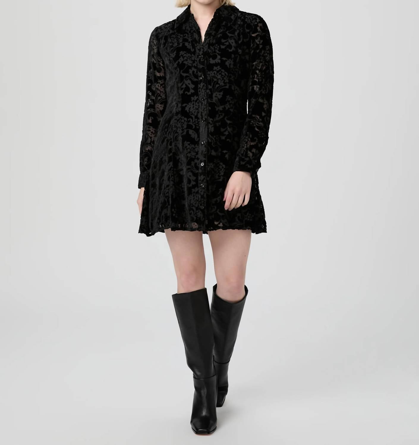 Elevate your wardrobe with the Desano Shirt Dress by Paige, an alluring piece enriched with a silk blend, perfect for a sophisticated look. This black mini dress features long sleeves with button cuffs and eye-catching velvety burnout blooms, offering a textured aesthetic. Composition: 80% Viscose, 20% Silk. Closure: Front button closure. Care: Dry clean only.