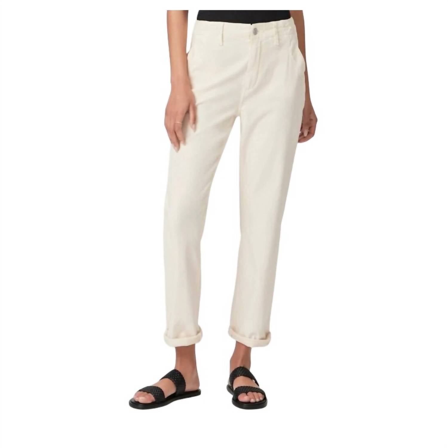 A perfectly tailored straight leg that you'll want in every color! Experience chic comfort with the Paige Drew Straight Leg Pants in a creamy ivory, perfect for your relaxed summer style. These straight-leg pants boast a high-rise waist and a cuffed hem, crafted from 98% Lenzing Lyocell and 2% Elastane for a soft touch and flexible fit. They feature convenient pockets and a secure button closure, with a 29" inseam and an 11" rise tailored for a comfortable, flattering silhouette. Caring for these pants is easy: simply machine wash cold inside on a gentle cycle with like colors, and tumble dry on low.