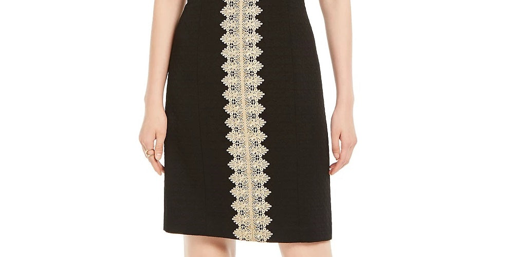 Pappagallo Women's Sleeveless Jewel Neck Above The Knee Shift Evening Dress Black Size 18