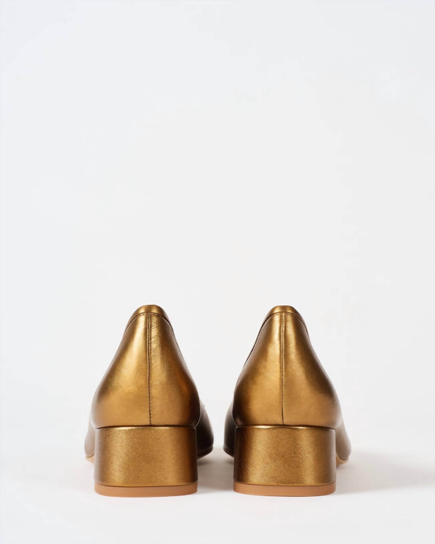 These ballerina heels are crafted from soft lambskin leather, featuring a classic round toe accented with a bow detail. Set on a block heel for a balance of comfort and elegance, each pair is unique, with natural variations in texture and markings that highlight the individuality of the leather.