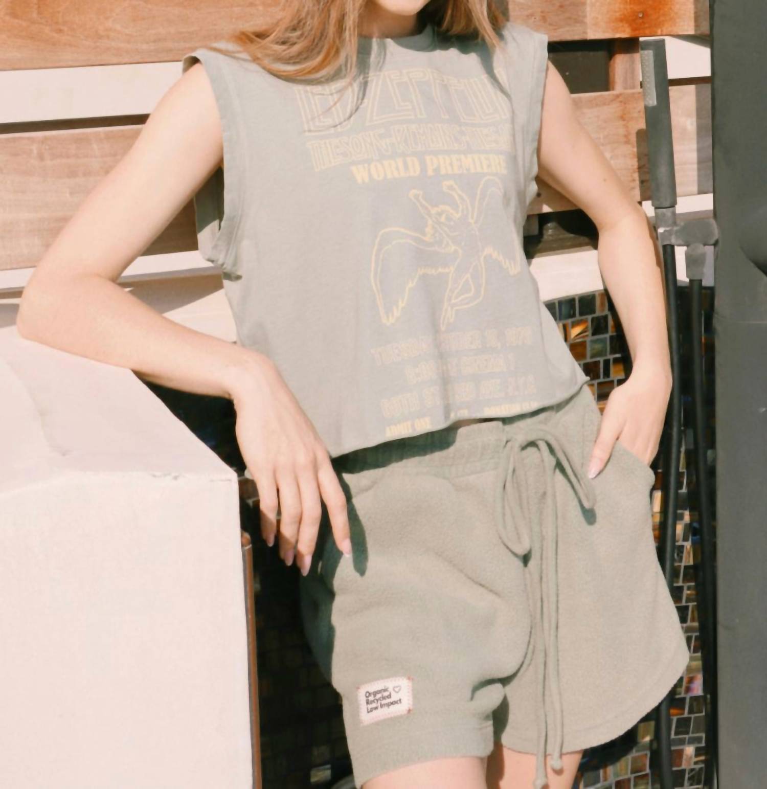 Experience effortless style with the Led Zeppelin Swan Song Tank by People of Leisure. Designed in a slightly oversized, relaxed fit, this sleeveless tank features a graphic design in olive gray. Ethically made in Los Angeles, CA from 100% organic cotton, it guarantees comfort and a sustainable choice. For easy care, this pull-on top can be machine washed cold or warm and tumble dried on low. Carli is 5'7" and wears a size small. Available in sizes S-XL.