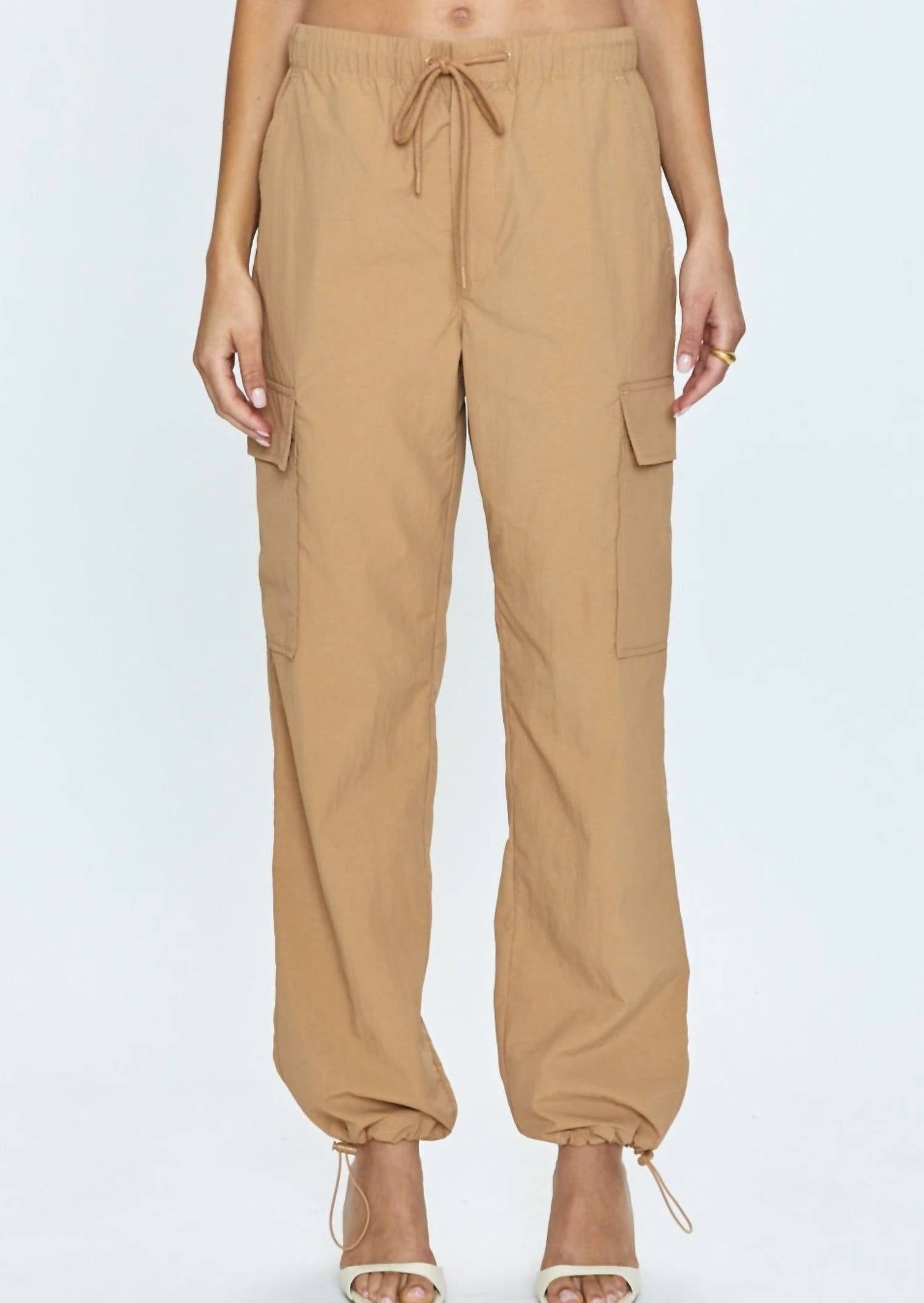 The perfect pant for running around town and looking cool while doing it. Crafted from lightweight nylon, offering a comfortable, high-rise fit with a versatile cargo silhouette. Designed with utilitarian pockets and adjustable ankle toggles. Easily transition between a jogger or straight leg style. Closure is a convenient pull-on. Care is simple with machine wash. Featuring a 12-inch rise and 30-inch inseam. Combine functionality with fashion for any occasion.