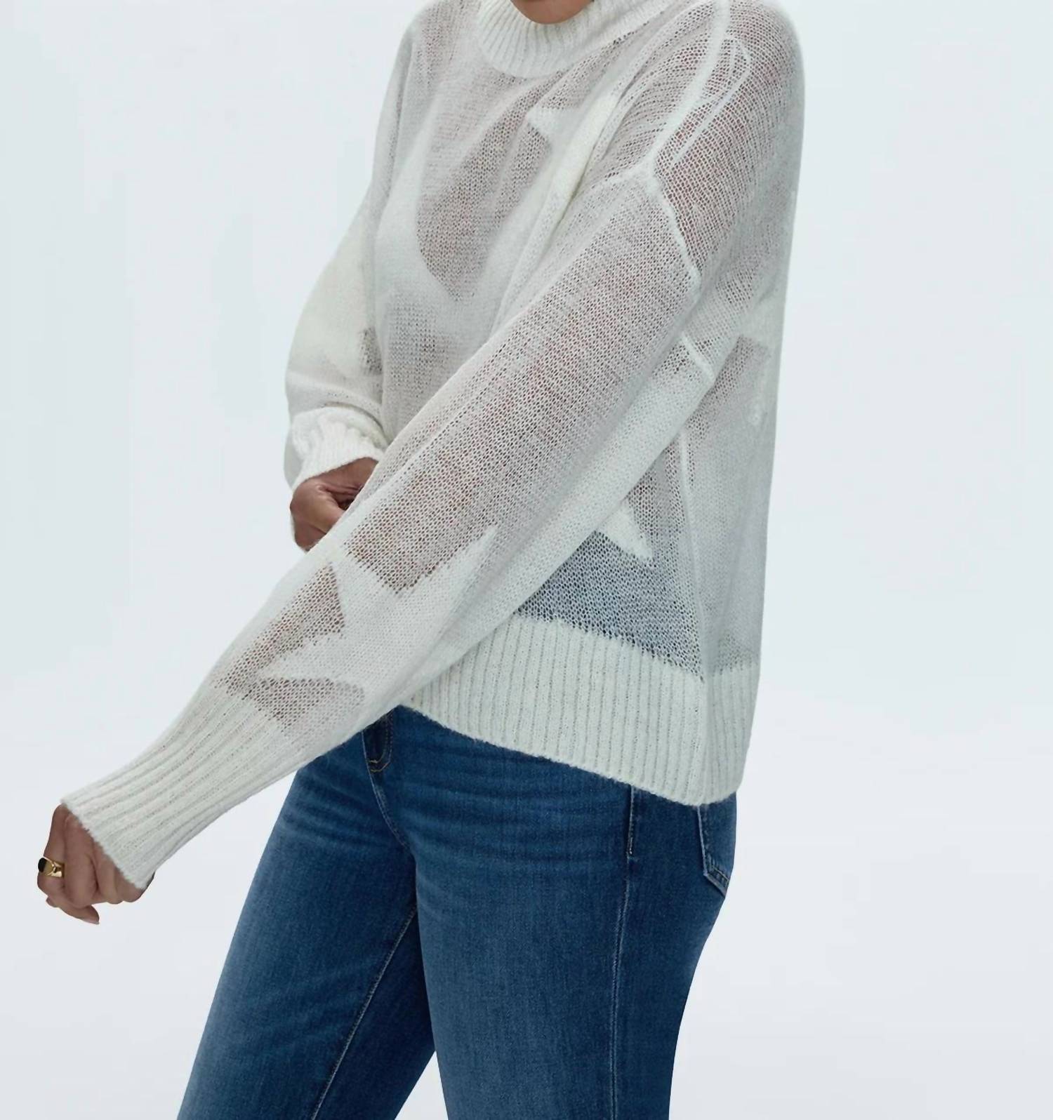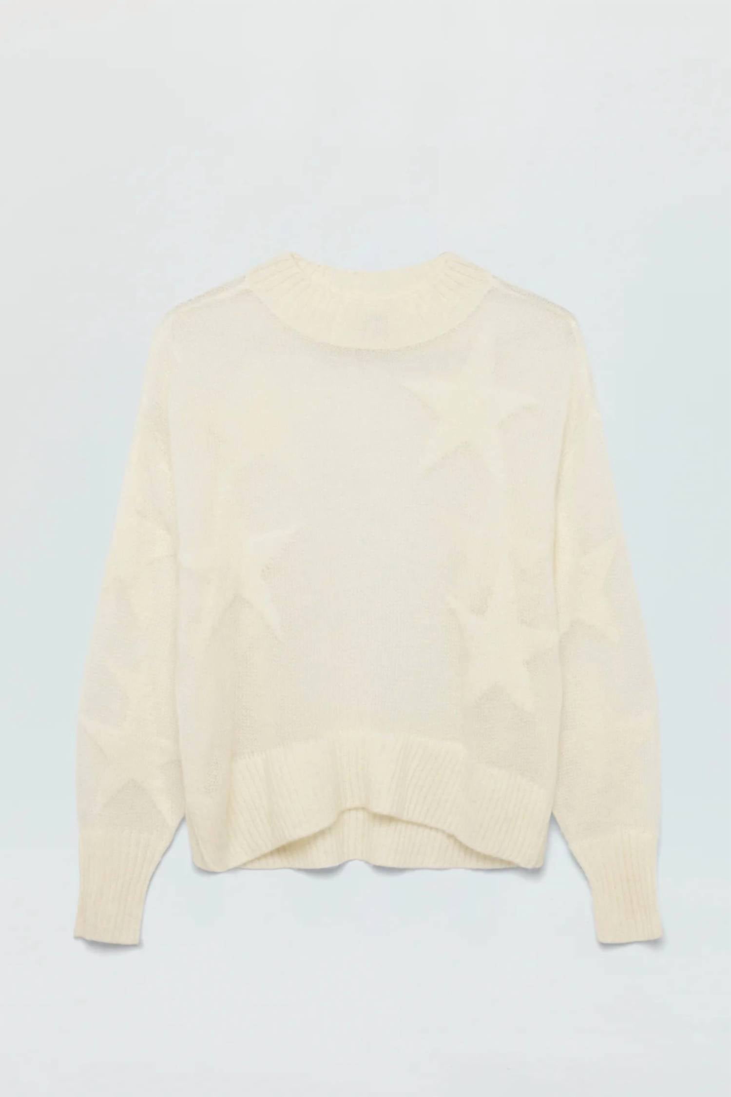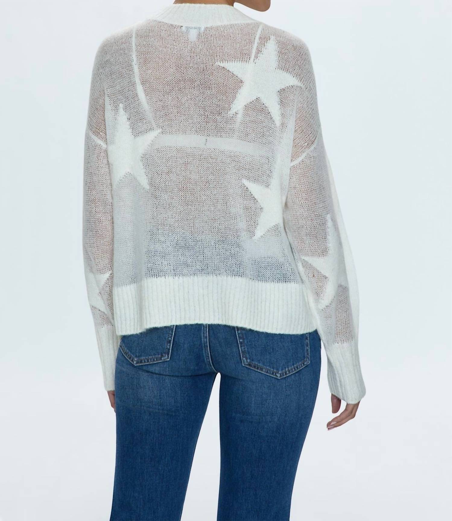 Experience the perfect blend of comfort and style with this trendy crew neck sweater, designed to effortlessly elevate your wardrobe. Pair it with your favorite denim and loafers for the perfect look. Unveil effortless elegance with the Joslyn Sheer Sweater by PISTOLA, crafted for those who appreciate standout style. This ultra-lightweight, open-knit pullover features a distinct monochromatic star print motif against an ivory backdrop. With long sleeves and a relaxed, scooped crewneck, the asymmetrical high-low hem adds a contemporary touch. Made from acrylic, this patterned piece is a pull-on design and should be dry cleaned.