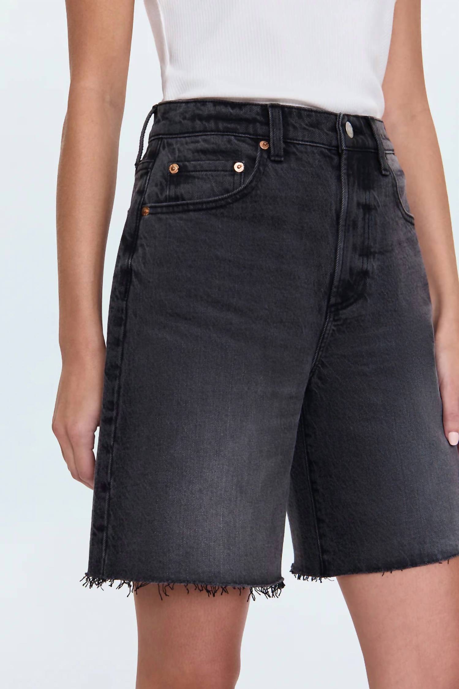 You can never have too many jean shorts and these will be your new favorites. Introducing the Kaylee High Rise Pinched Loose Short by PISTOLA, a must-have for those who embrace 90s fashion. These jean shorts feature a flattering pinched waist and convenient button closure, exuding a laid-back vibe in After Hours—washed black denim with vintage fading, whiskering, and a frayed hem. Crafted from a cotton blend, they ensure comfort with their signature stretch and practicality with pockets. For effortless care, simply machine wash, making them perfect for summer vacations and casual getaways.