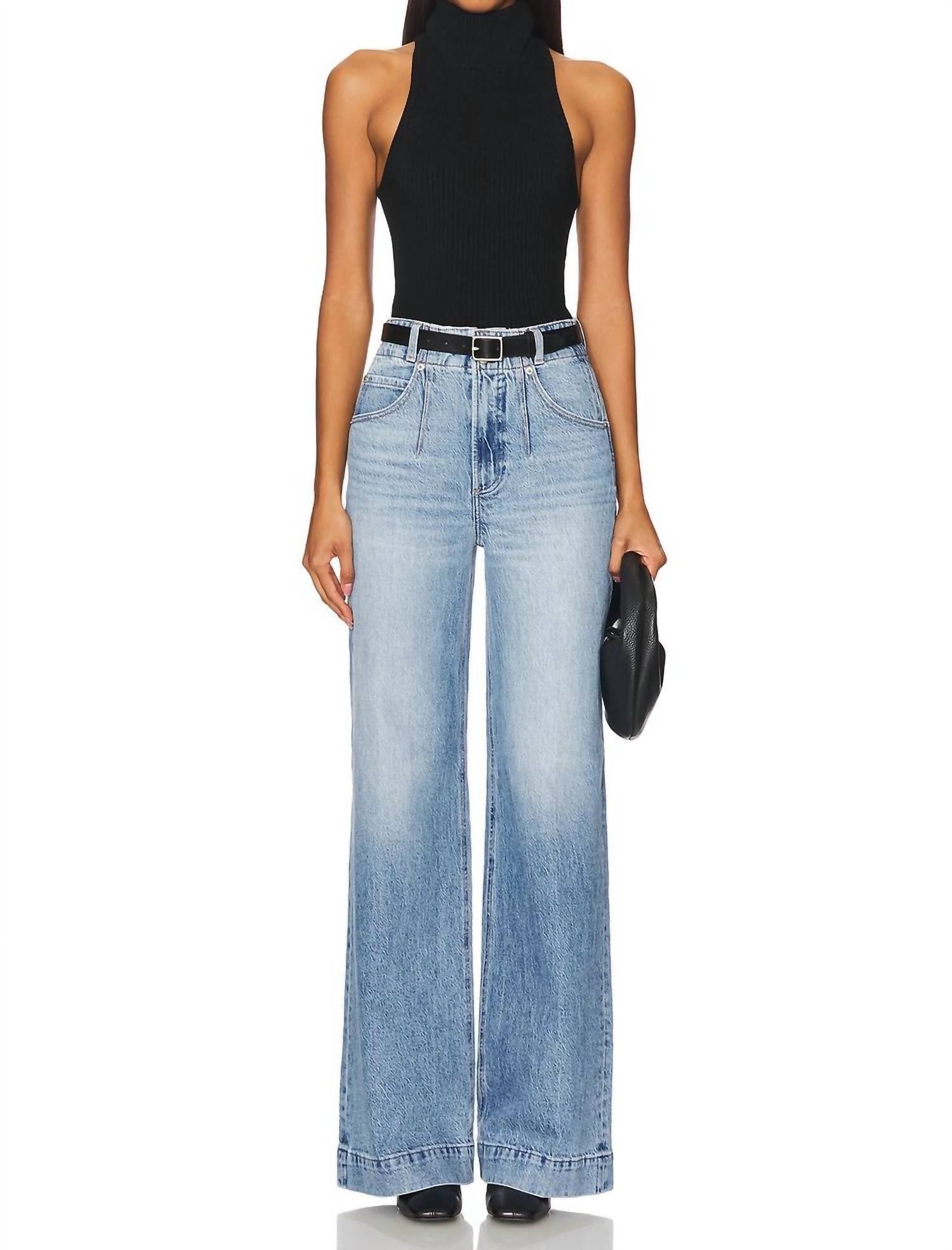Just as cute as they are comfortable. Discover the Lana Double Button High Rise Ultra Wide Leg jeans by PISTOLA, a chic choice for those seeking a statement piece this spring. Crafted with a cotton blend material, these light wash jeans feature a high-rise fit with an ultra-wide leg style, perfect for elevating your birthday ensemble. They come with a practical button closure and are complete with pockets for added functionality. Enjoy the simplicity of solid pattern jeans that effortlessly blend style and comfort.