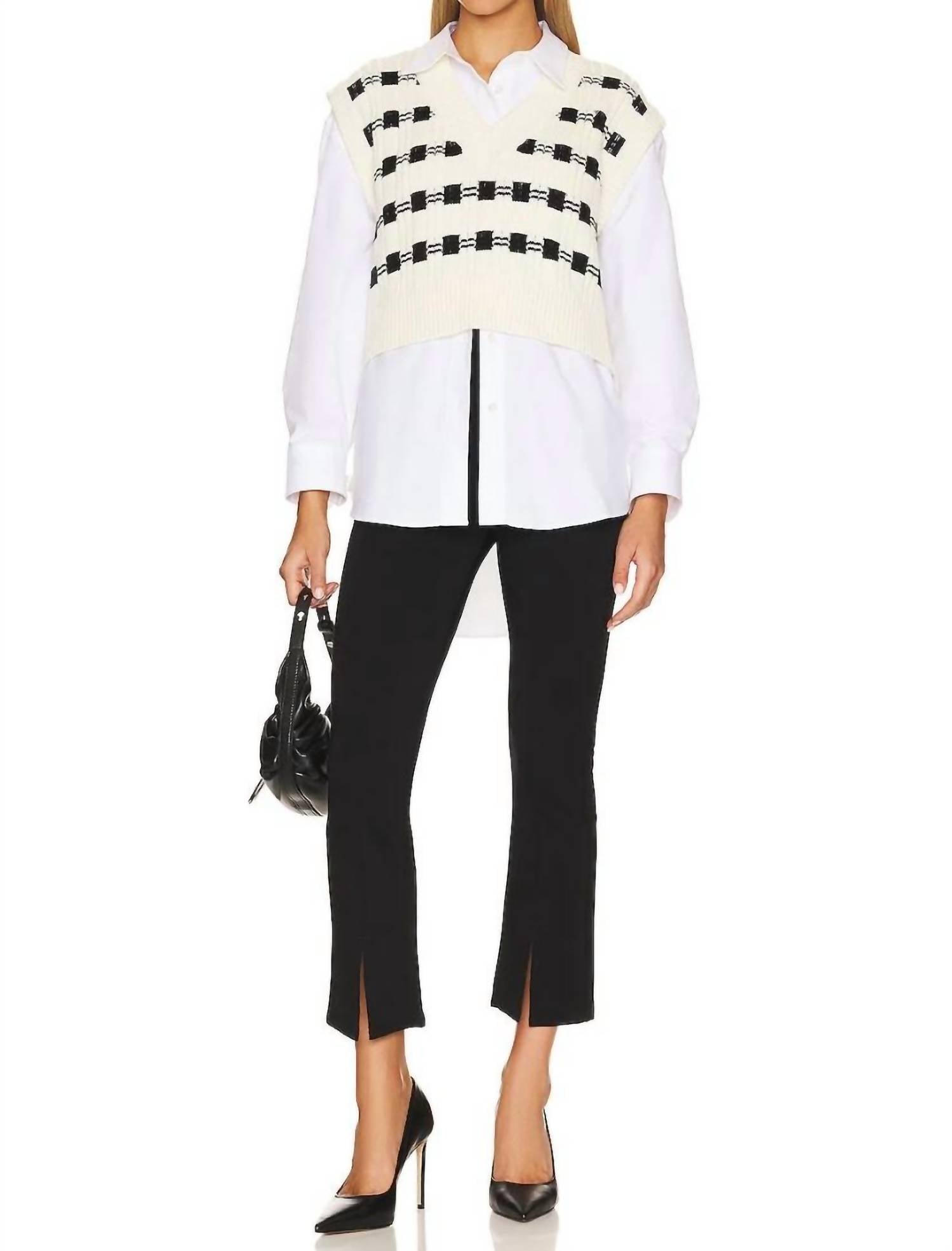 Upgrade your wardrobe with these cropped pants, designed to merge sophistication and wearability. The tailored fit ensures ultimate comfort during long days or nights out. The Pistola Lennon With Vent Pants in Night Out are a chic and versatile addition to any wardrobe. These women's pants feature a high rise and a cropped boot cut that flares out above the calf, providing a flattering silhouette. Crafted from 47% Rayon, 46% Nylon, and 7% Spandex, they offer both stretch and comfort, complete with center front slits at the hem for added style. Closure is with a front button and hidden zipper, and the pants include belt loops and five-pocket design. The inseam measures 26 inches and they're easy to care for with machine washing.