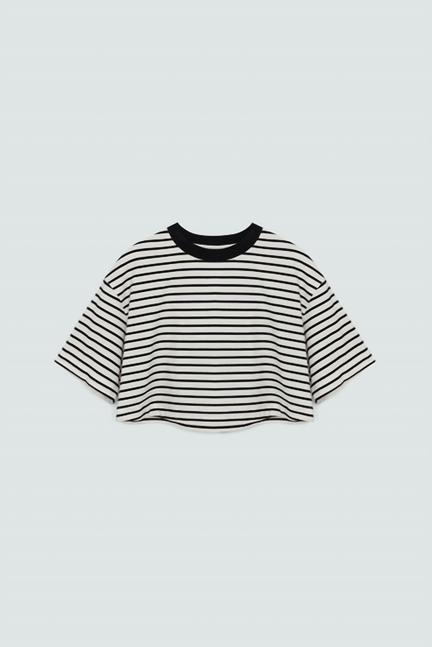 Show a little skin in this cute and casual crop top. Introducing the Mae Cropped Tee by PISTOLA, an effortlessly cool addition to your summer wardrobe. This oversized tee features short sleeves crafted from 100% cotton and comes in a chic black and white stripe pattern. Its cropped waist length and peek-a-boo open back cutout offer a feminine touch, while the pull-on closure and crewneck style promise comfort and ease. Imported and easy to care for, simply machine wash cold to keep this piece looking fresh.