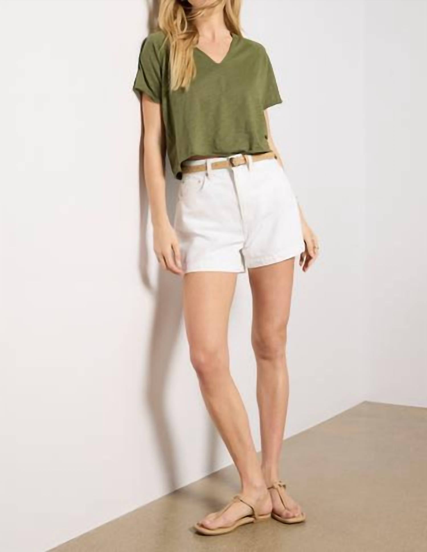 High-waist is here to stay and we especially love this style short. Elevate your summer style with the Saige High Rise Shorts by PISTOLA, crafted from 100% cotton non-stretch denim in a crisp white shade. These shorts offer a high-rise silhouette with precise measurements: a 12 1/2" front rise, 4" inseam, and 26 1/2" leg opening. Featuring practical pockets and a secure button closure, they effortlessly combine fashion with functionality. Care for this minimalist wardrobe staple by washing cold.