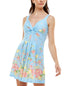 Planet Gold Junior's Floral Print Fit & Flare Dress Blue Size Large