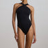 The Polo Ralph Lauren Crisscross High-Neck One-Piece Swimsuit is a sophisticated choice for your next beach day. In a sleek black hue, this swimsuit features a crisscross high-neck silhouette, a scoopback, and high-cut thighs for a modern, flattering look. It's crafted from a blend of 65% nylon and 35% elastane, offering a comfortable fit and full seat coverage. Made with an "LRL"-engraved metal plaque for a subtle touch of elegance, this swimsuit is lined at the front and imported. Care instructions: Hand wash. Model is 5'10" and wears a size 4.