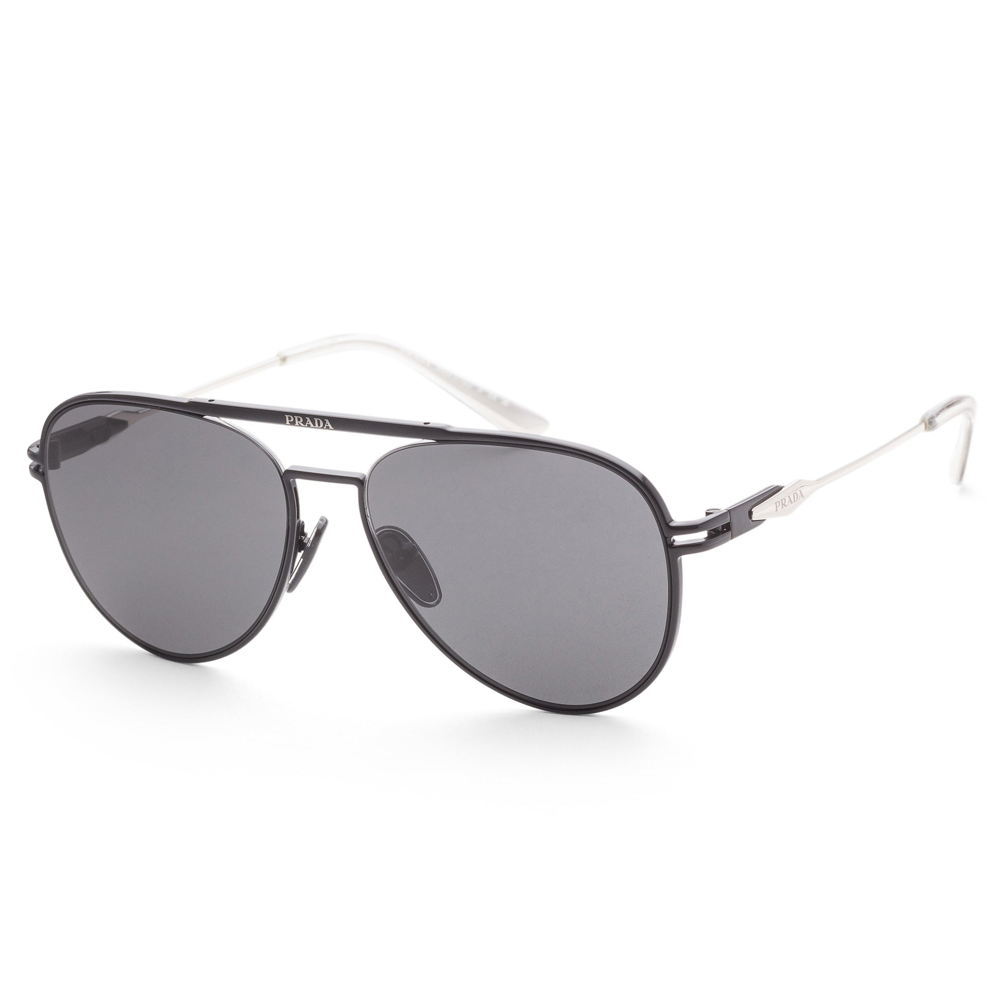 These sunglasses are made with a matte black aviator-shaped frame construced from quality metal and the lenses are dark grey. 100% UV Protection, non-polarized. Made in Italy.
