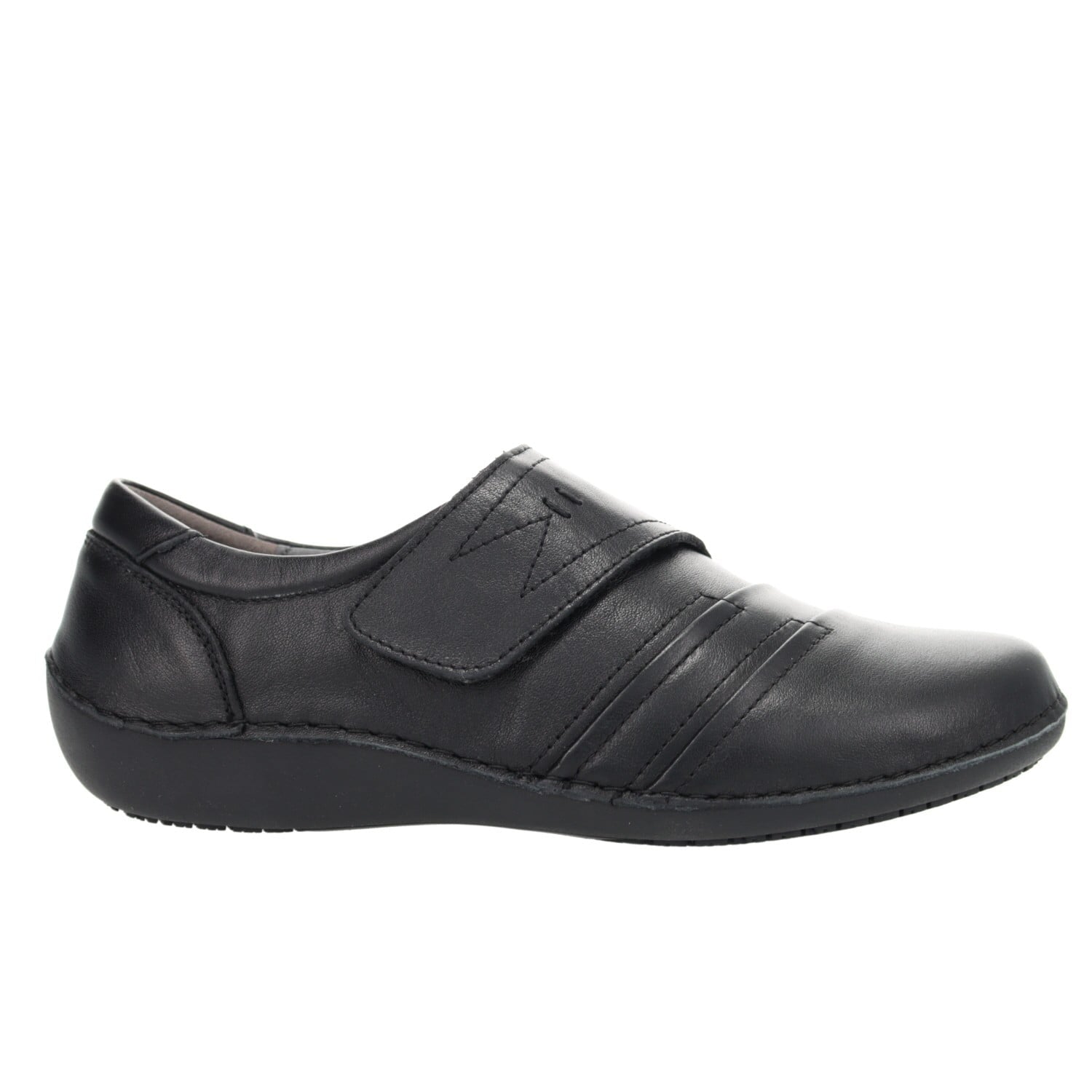 Full leather upper with wide hook and loop strap closure for easy on and off|Arch supporting high density open cell PU foam allows air to flow for a cooler- healthier footbed|Leather|Heel Height; 1 inches