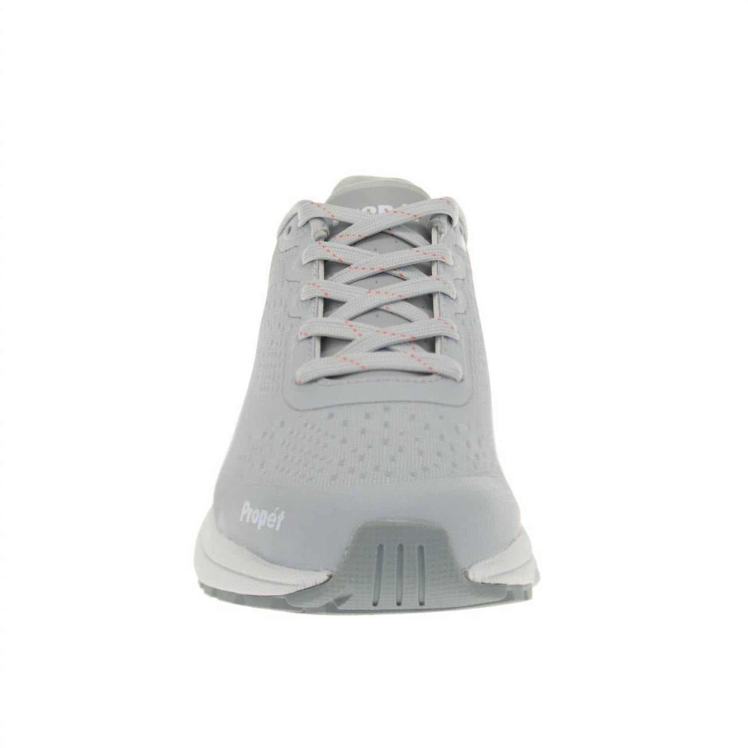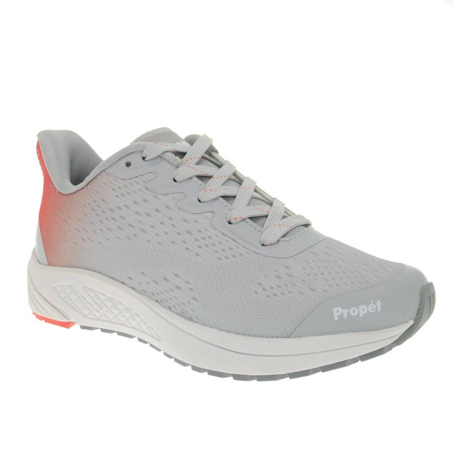 Get your daily steps in with these adorable sneakers. Step up your style and comfort with the Women's One Evolve Sneaker by PROPET, presented in a chic Grey Coral combination. This sleek athletic sneaker is crafted from a two-tone mesh design for excellent breathability and features a round toe and flat heel style. Designed for women, it boasts a cushioned collar and sturdy heel counter for added support, with a lightweight midsole and flared outsole enhancing stability during activities. Perfect for travel and channeling 90s fashion trends, this sneaker is ideal for spring and sure to be a hit on the 4th of July.