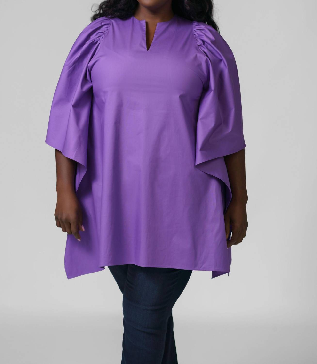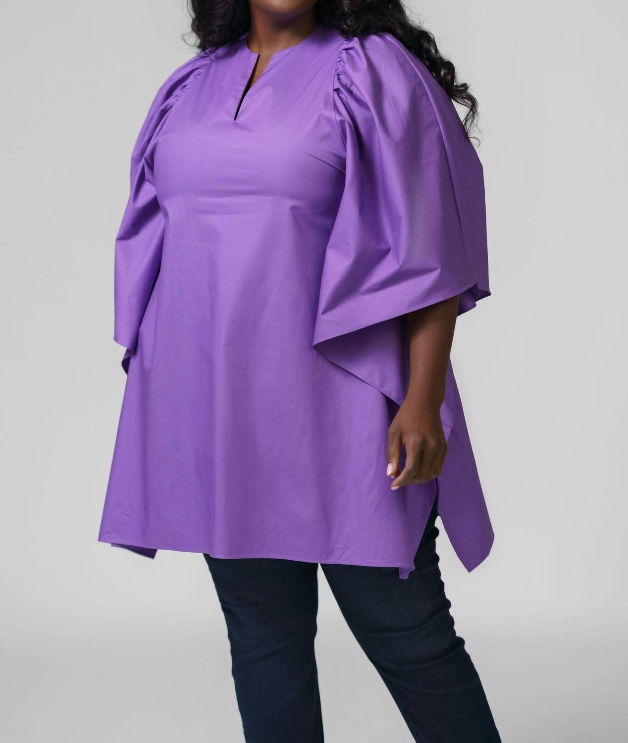The kind of easy and flattering dress you'll be reaching for all season long. Introducing the Mini Swing Tunic by Psophia in a stunning Passiflora hue, designed to elevate your wardrobe with its artful shape. The tunic features elbow-length wide sleeves and a loose, wide body for effortless movement, highlighted by a sophisticated V-neckline. Made with a solid pattern and tailored in an A-line silhouette, this chic piece is perfect for wearing as a dress or pairing with jeans for a versatile look. Closure: Pull-on style.