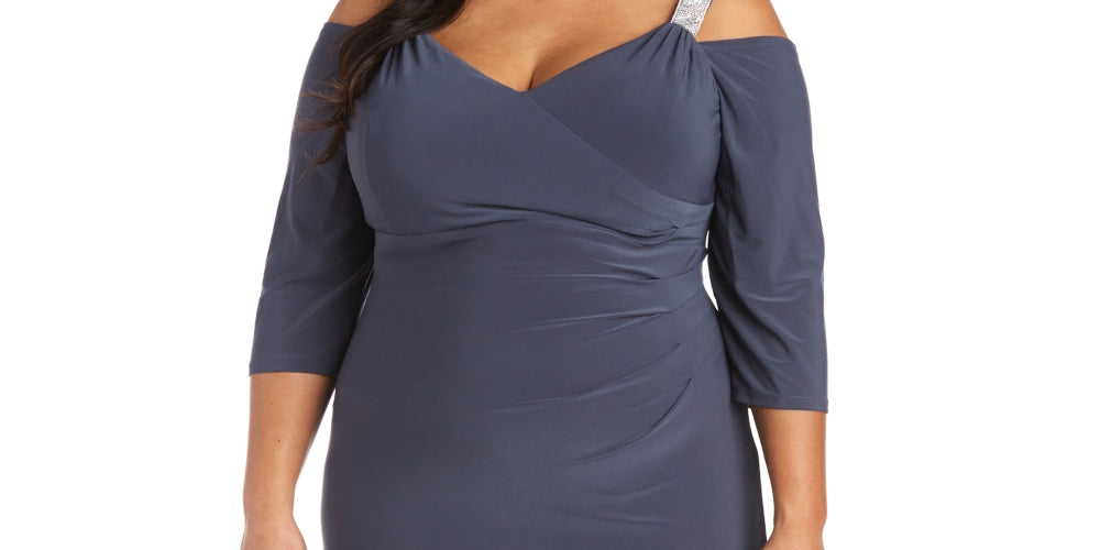 Ruched starburst detail at side|Imported|Sweetheart neckline|Hidden back zipper closure|3/4-sleeves with embellished straps|Connect with a stylist & get free expert advice online or in stores for your wardrobe| home & more. Book Now