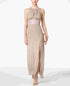R & M Richards Women's Metallic Knit Keyhole Halter Gown Gold Size 10