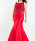 Step into sophistication with the Boatneck Beaded Mikado Mermaid Gown by Rachel Allan, tailored for a memorable prom night. This captivating sleeveless gown in bold red exudes elegance with intricate beadworks throughout. Its silhouette flawlessly transitions into a mermaid shape that accentuates any figure, all securely fastened with a discreet zip closure. Ideal for prom, this gown promises to make a stunning statement.