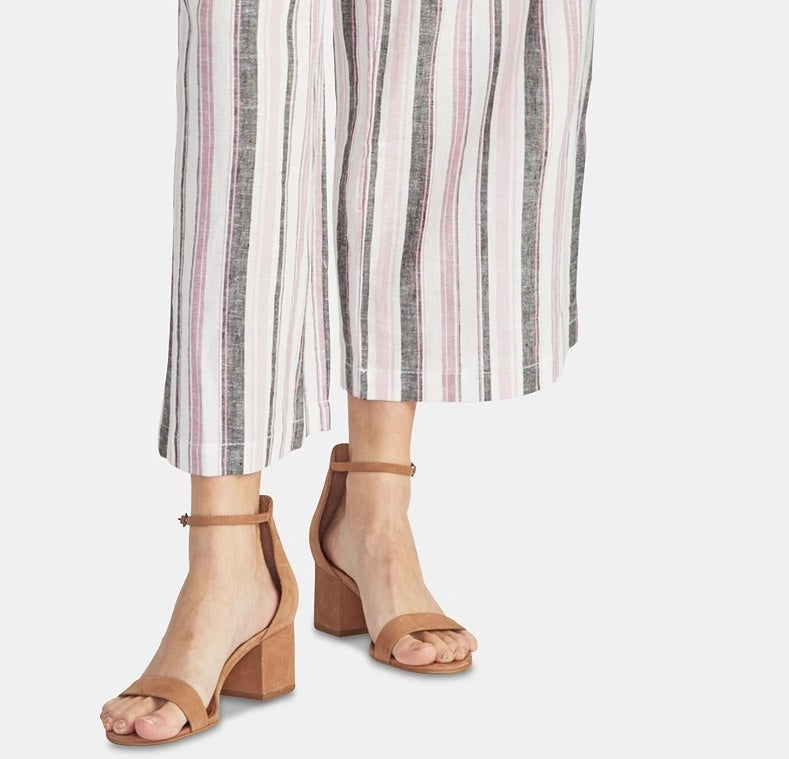 Approx. inseam: 24"|Rise: approx. 11"; cropped wide leg|Belted paperbag waistband|Linen/cotton|Machine washable|Imported