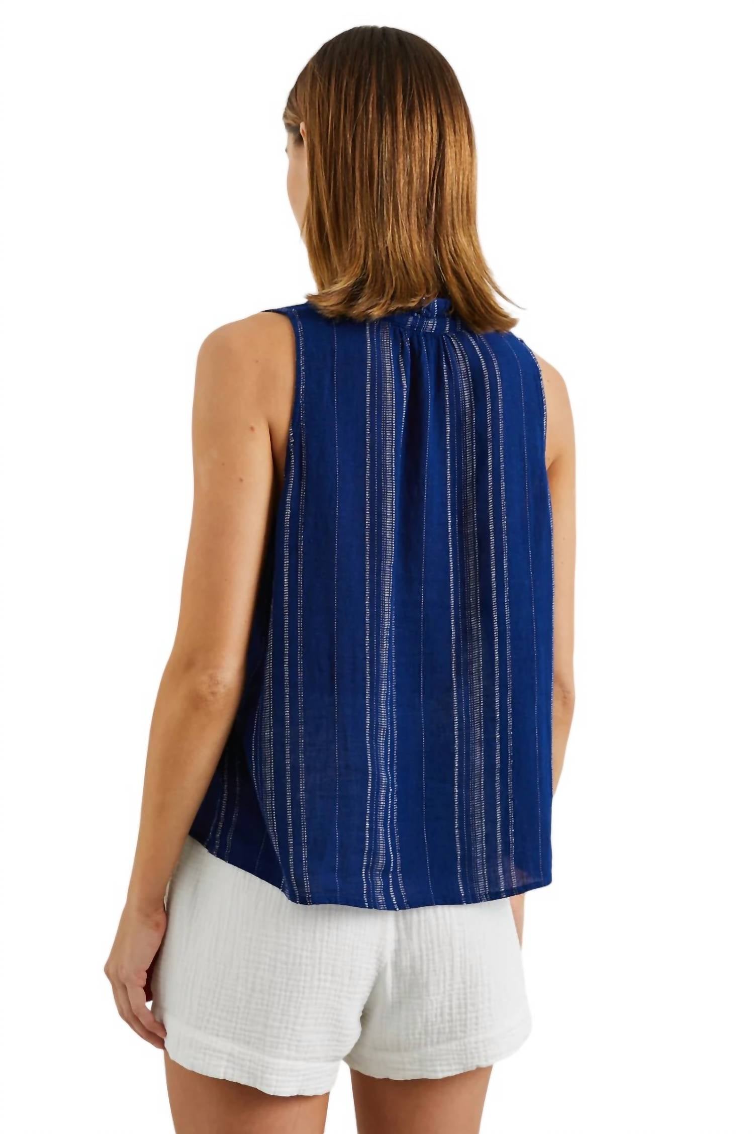 The perfect tank top for those warmer weather seasons.Features a split neck, sleeveless design, and a boxy fit with a stripe print. Made from a blend of 48% Linen and 52% Ecovero, it offers a lightweight and breathable feel. Hand wash cold. True to size. Front body length is approximately 22 inches (measured from size Small).