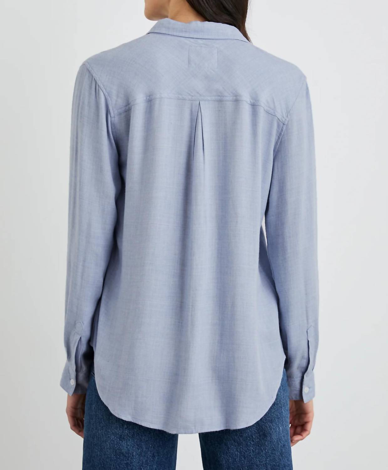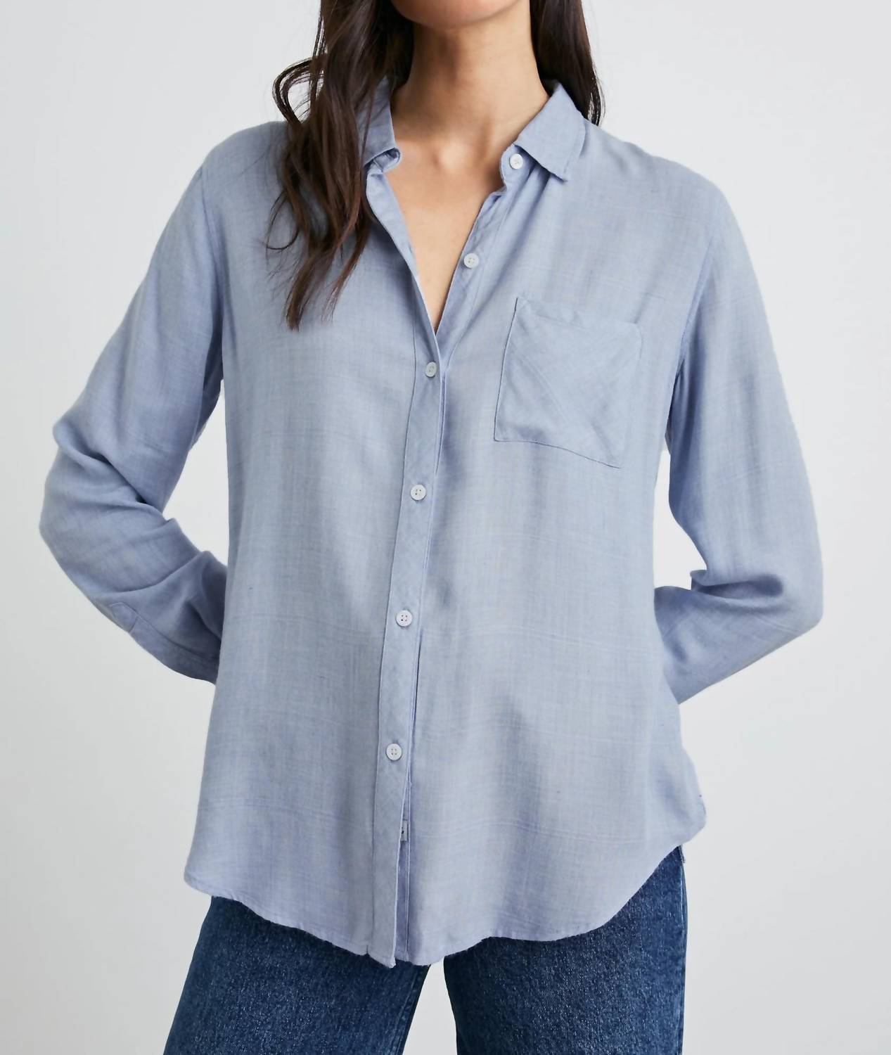 Perfectly tailored and soft to the touch. The Hunter Shirt is our signature button-down shirt that works for day, night, and even better, the weekend. Its unique fabric is spun from an incredibly soft rayon that hangs beautifully without any effort. This particular style features a light blue heather print. Perfectly relaxed with a classic fit, it can be tucked, tied, or left open. 100% Rayon. Imported. FIT Recommend ordering true to size. Front Body Length: 26 7/8"(Measured from Small) CARE Hand wash cold, hang dry. No bleach. Cool iron if necessary.