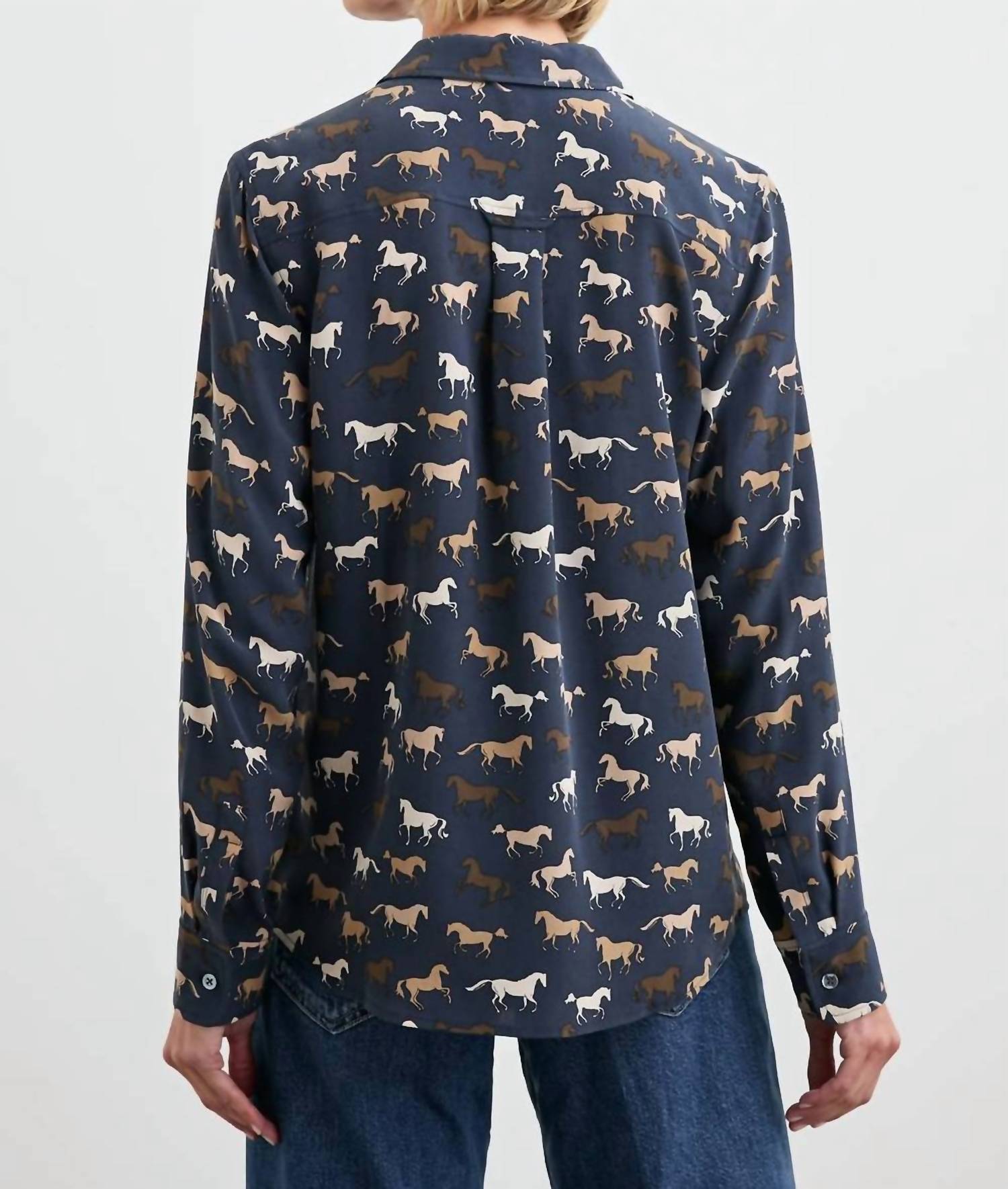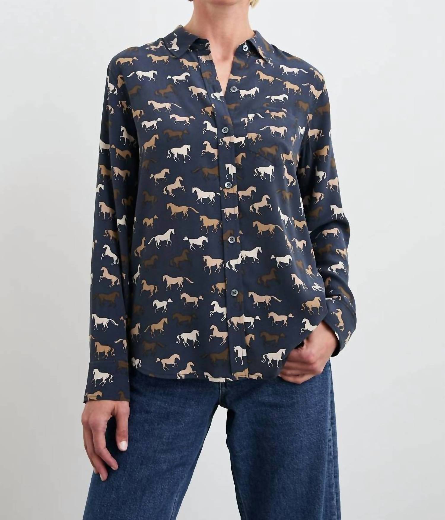 A classic button down shirt that will never go out of style. Unleash your wild side with the Kate Shirt by Rails, a fusion of polish and playfulness. This long-sleeve button-down is crafted from 100% ultra-soft silk and features a striking graphic print, perfect for making a statement. Imported with a garment length of 26.75”, it ensures a sophisticated fit. Closure is effortlessly secure with buttons, while care is easy with dry clean instructions.