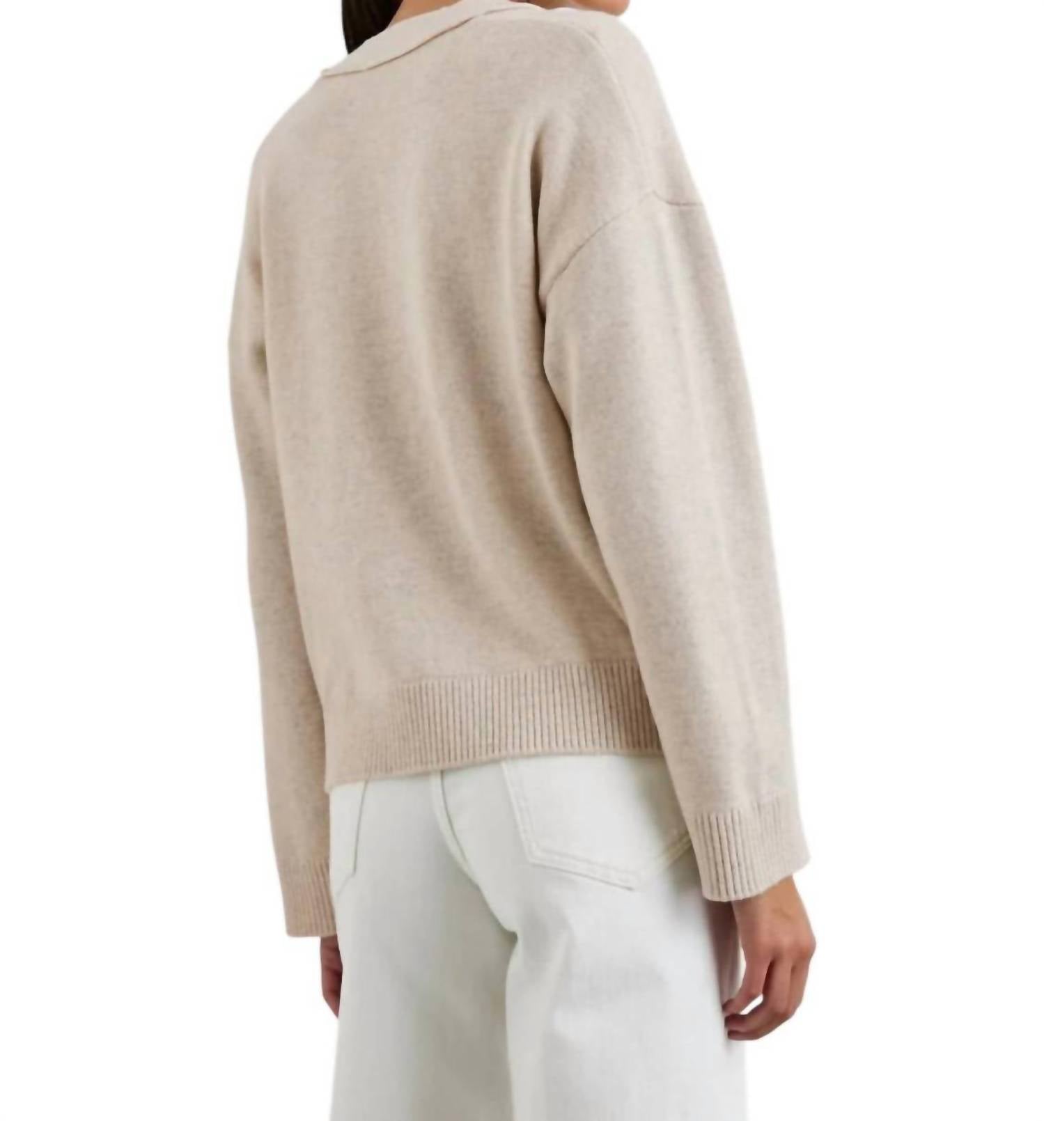 A classic fit that works just as good buttoned as it does left open. Elevate your wardrobe with the Lindi Cardigan by Rails, crafted for ultimate softness in a soothing oatmeal hue. This chic cardigan showcases long, relaxed sleeves and detailed ribbing on pockets, cuffs, and hem, offering a fine balance of style and comfort. Made from a premium wool blend of 50% cotton, 35% wool, and 15% cashmere, with a v-neckline and practical button closure. Garment length is 23.5 inches, specifically designed to perfection and recommended for dry cleaning.