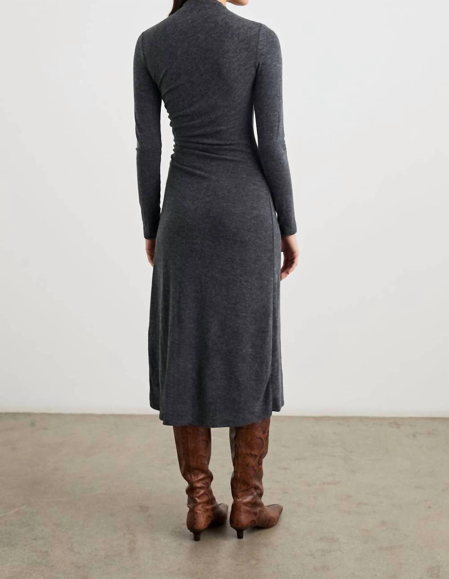 A flattering yet comfortable dress you'll be reaching for season after season. Introducing the Margaret Dress by Rails, a chic sheath silhouette perfect for cooler days in a stylish charcoal hue. This piece features long sleeves and a mockneck for added elegance, crafted from an ultra-soft blend of 83.5% Polyester, 12.5% Rayon, and 4% Spandex. Designed for easy wear, it comes with a convenient pull-on closure. For best care, hand wash and lay flat to dry.