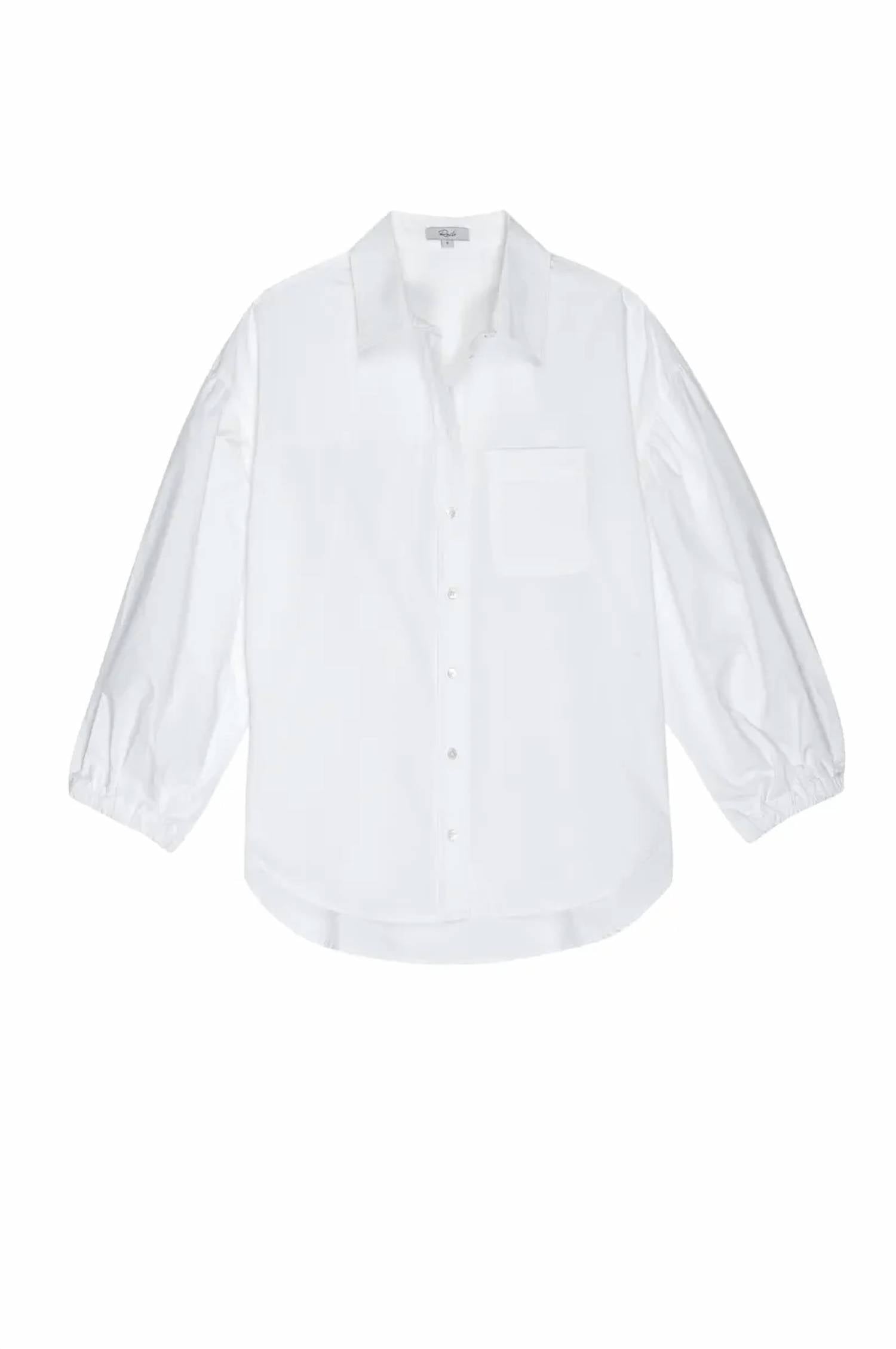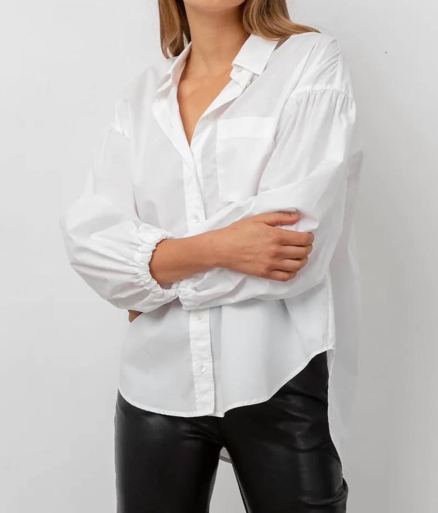 Perfectly tailored and soft to the touch. Experience the effortlessly chic Winnie Top by Rails, a cotton blend button-down shirt perfect for any occasion. This crisp black long-sleeve shirt features an intentionally oversized fit with dropped shoulders and full sleeves accentuated by elastic cuffs and shirring. Made from 50% Cotton and 50% Tencel™, it boasts a patch pocket at the chest and a collared neckline, measuring 27.87 inches in length. Care for this timeless piece by adhering to the dry clean only instructions.