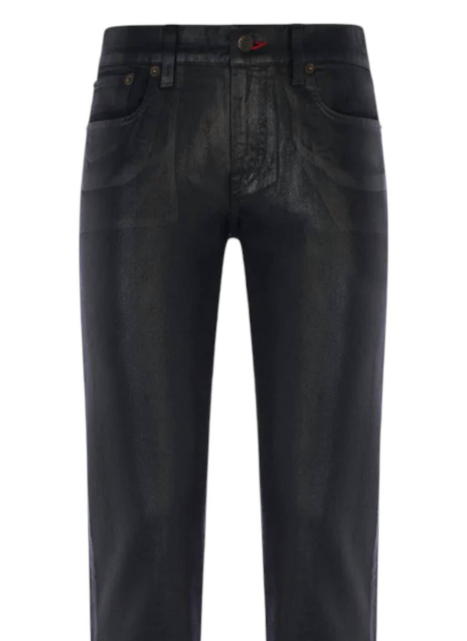 Introducing the Shilah Waxed Denim Skinny Jeans by Ralph Lauren in timeless black, perfect for a sleek, modern look. These mid-rise jeans feature a skinny-leg silhouette intended to hit at the ankle, complete with belt loops and a button fly with Ralph Lauren's signature buttoned closure. Crafted in Italy, they boast 100% cotton with a genuine leather patch at the back right waist, adorned with a metal stacked "RL" monogram. Care for these premium jeans by hand washing to maintain their upscale finish.