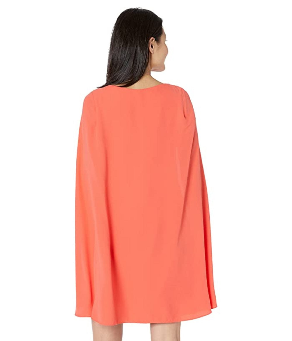 A stylish choice for special occasions| this modern georgette cocktail dress is elevated by a cascading cape| which adds fluid movement to its body-hugging silhouette| Slim fit| Rounded neckline| Intended to hit at the knee| Concealed left-side-seam zipper with a hook-and-eye closure
