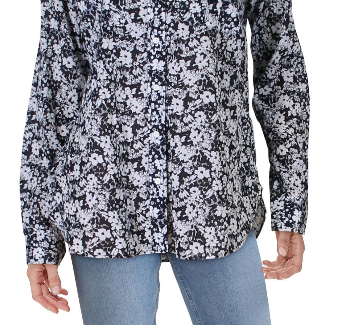 Ralph Lauren Women's Courtenay Floral Print Collar Button Down Top Navy -Cream Size Medium