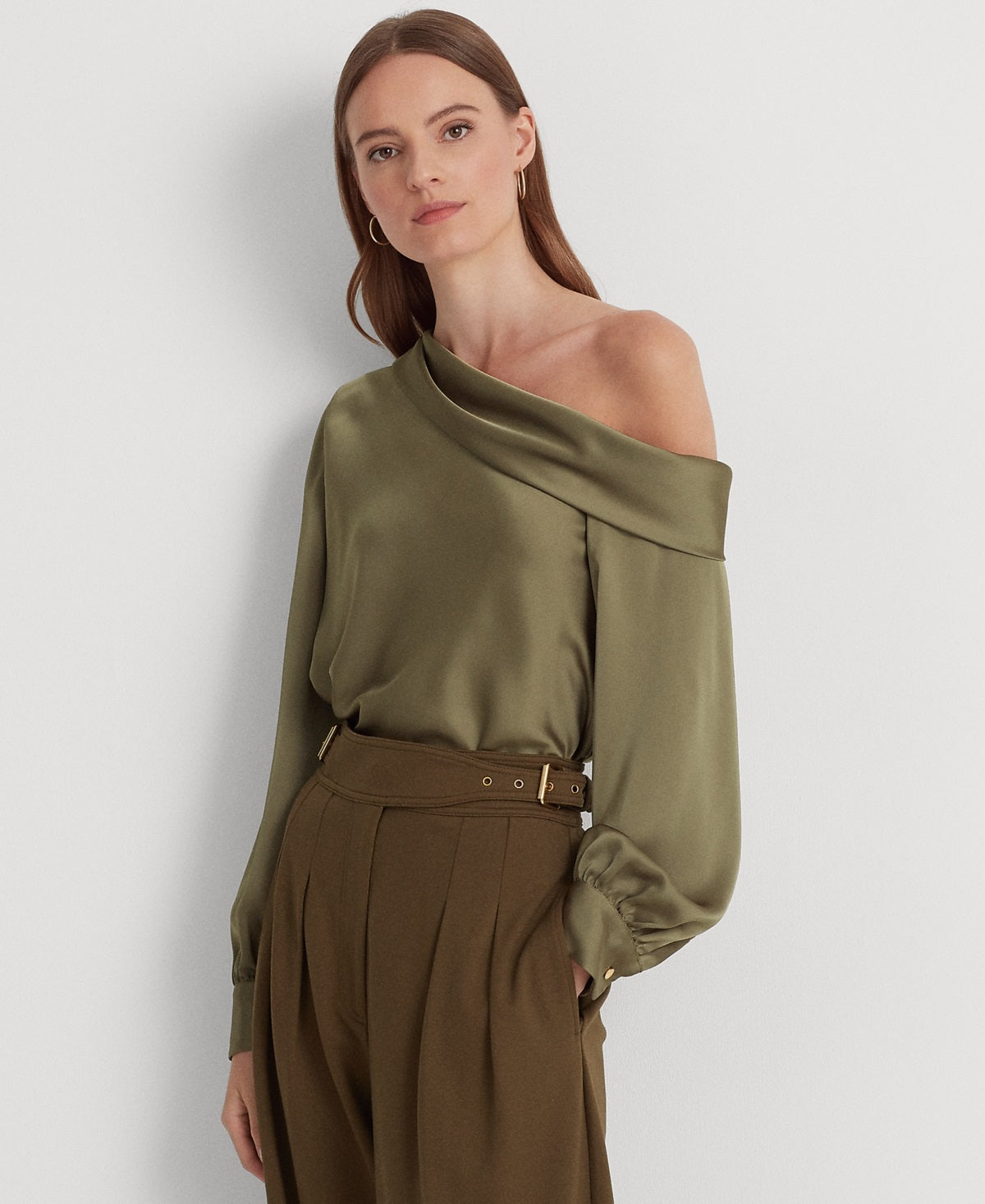 Ralph Lauren Women's Satin One Shoulder Blouse Green Size Small