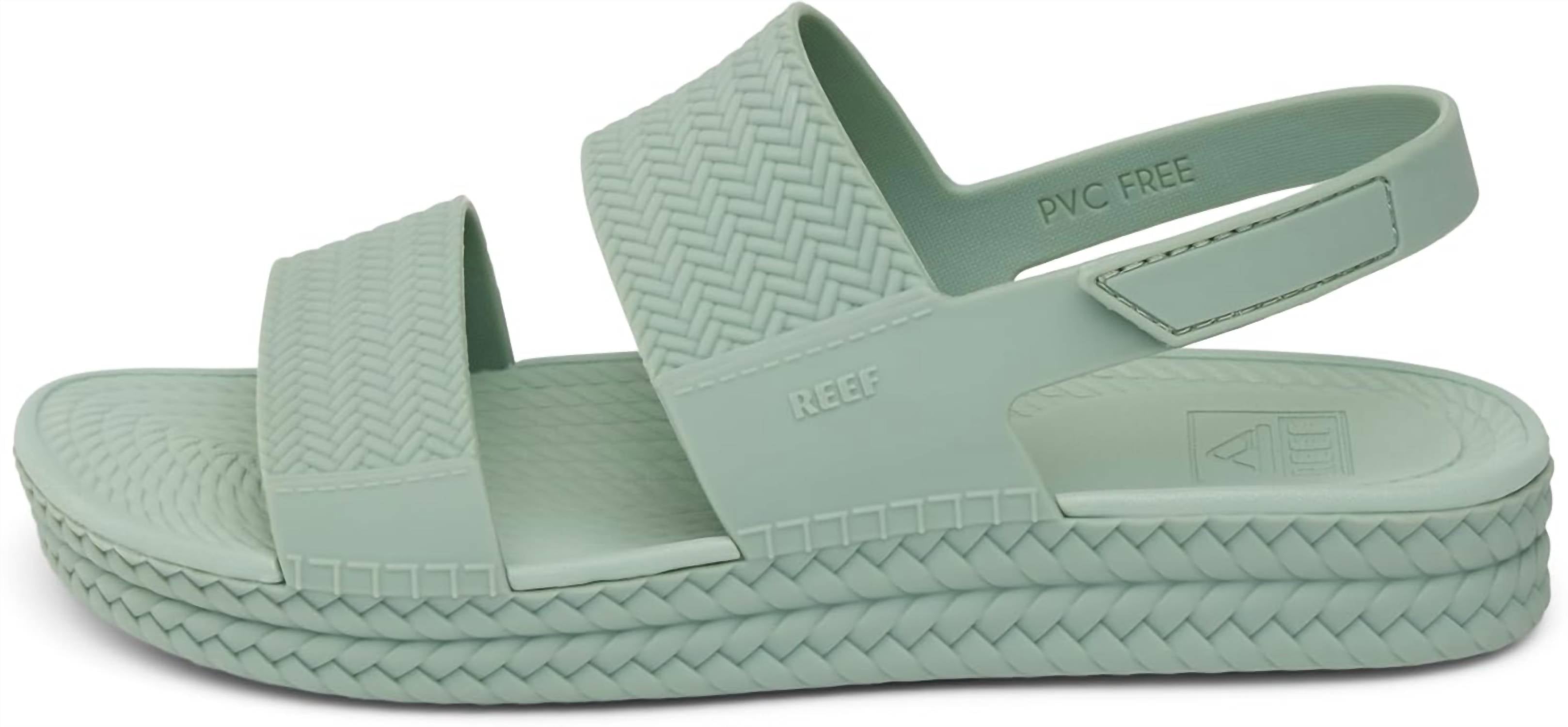 This sandal will take you from brunch to dinner and everything in between. Introducing the Women's Water Vista Sandals by REEF, perfect for your summer vacations. These sandals are designed with a vibrant Frosty color and feature an open toe shape complemented by a flat heel for ultimate comfort. Ideal for women who love stylish and practical footwear, these sandals are crafted for sunny adventures. Dive into easygoing elegance with a touch of paradise at your feet.