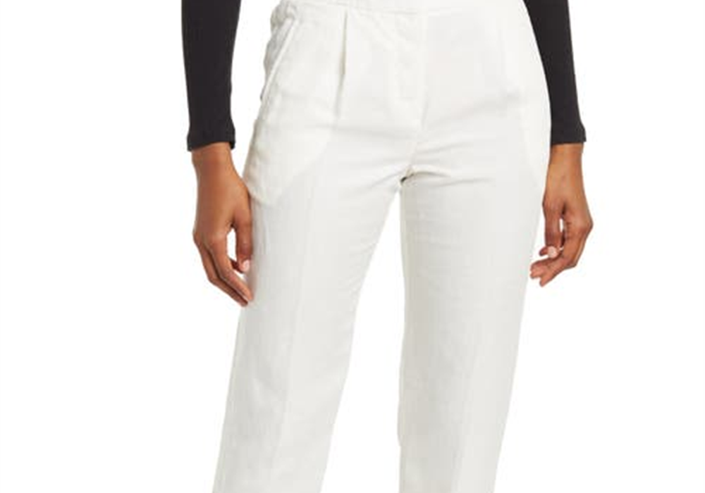 Ask a question about Reiss Lilly Linen Blend Pleated Crop Trousers in White , Size 6 Us