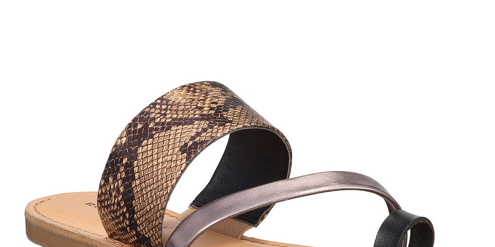 Asymmetrical straps merge with gladiator inspiration in Rock & Candy's modern and chic Billyne toe-ring sandals.| Round-toe slip-on toe-ring sandals| x| y genuine calf hair| Fur origin; x| This item cannot be shipped to the state of California| Manmade upper; manmade lining; manmade sole