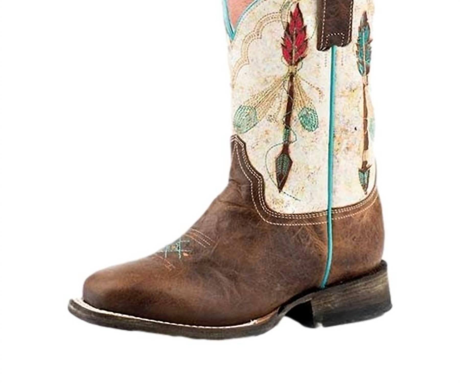 Made from premium full-grain cowhide leather, the boots feature a subtly textured surface that speaks to their authenticity and quality. The 8-inch shaft showcases delicate feather embroidery—a nod to free-spirited adventure, perfectly balanced with a classic square toe for a structured, iconic silhouette. The interior is lined in supple leather, offering breathable comfort, while Roper’s REBOOT removable insole system provides support that grows with them. Beneath it all, a durable leather sole and a 1¼-inch walking heel ensure confident strides and all-day wearability, whether on dusty trails or city sidewalks.