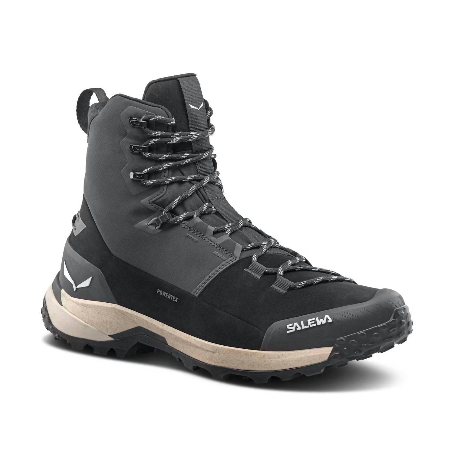 Rainboots so cute, you'll want to wear these even on the lightest drizzle days. Step into adventure with the Women's Puez Winter Mid Ptx Boot by SALEWA, a perfect blend of lightweight design and robust support for alpine and mountain treks. Crafted from durable black nylon with a mid-cut for ankle protection, it features a round toe and a flat heel (1" & under) for stability. These boots are designed with a waterproof and breathable PTX membrane, protective toe cap, rubber rand, and Pomoca rubber outsoles for exceptional traction on mixed terrain. Ideal for winter travel, they come in a medium width, effortlessly combining functionality and comfort.