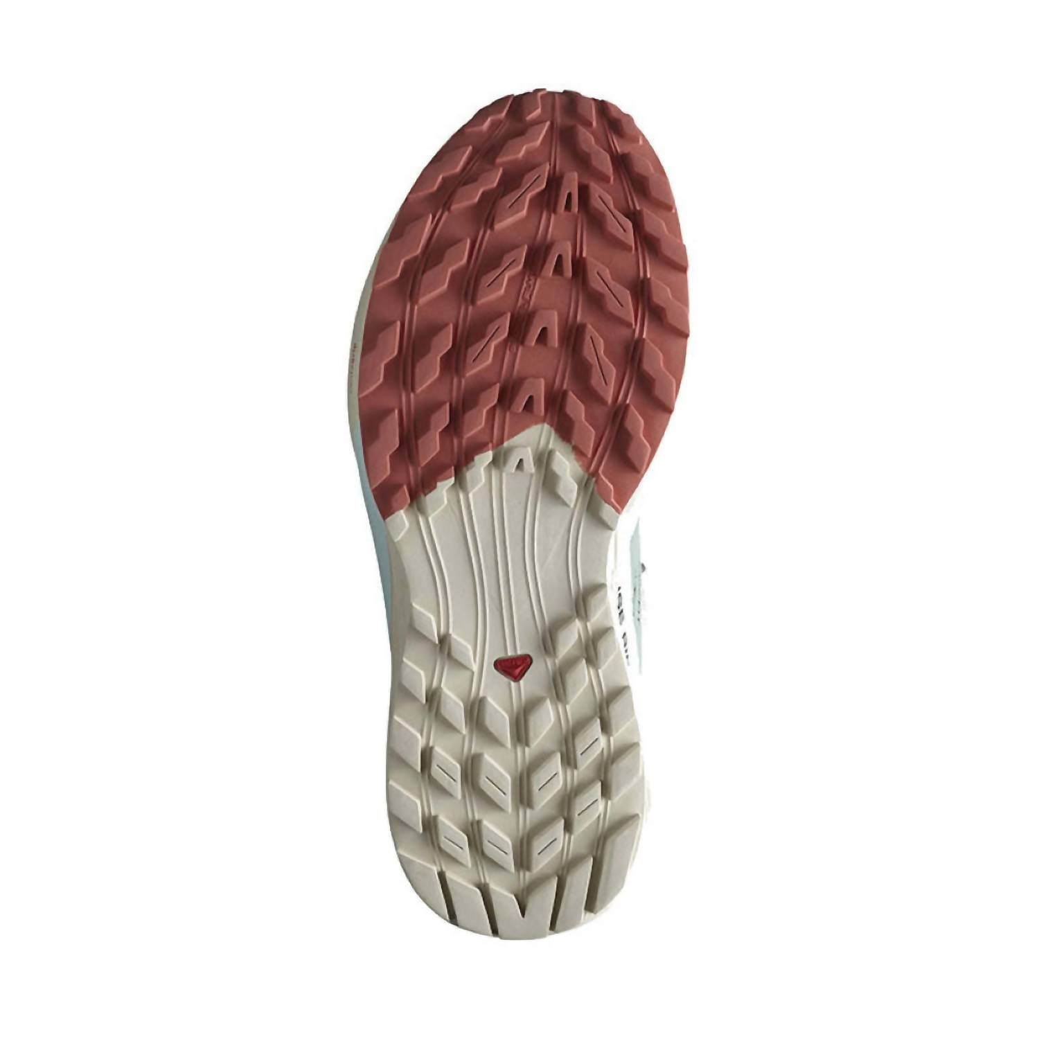 Stylish, comfortable and supportive. These athletic sneakers check all of the boxes. Conquer the trails with the Women Sense Ride 5 Running Shoe by SALOMON, crafted for both short trail runs and ultra trails. Designed with a lightweight 3D Mesh upper for optimal breathability and support, these shoes feature the SensiFit™ structure for a snug, personalized fit. Equipped with a responsive Energy Foam midsole and an All Terrain Contagrip® sole, this shoe ensures cushioning and a secure grip on various surfaces. With a Quicklace™ system for easy adjustments and a heel-to-toe differential of 8.3 mm, enjoy a smooth and confident stride every step of the way. Weight: 247g.