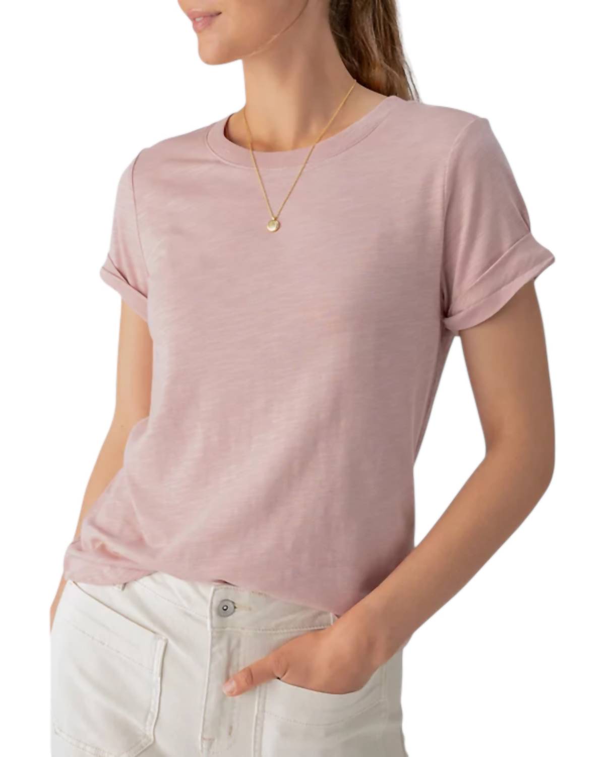The short sleeve tee you'll want in every color. Introducing our chic Smokey Rose short-sleeve tee, made from a soft 50/50 cotton-modal blend for a relaxed fit. At 26 inches in length with a convenient pull-on design, it's ideal for everyday wear. Easy to care for—just machine wash cold with like colors and tumble dry low.