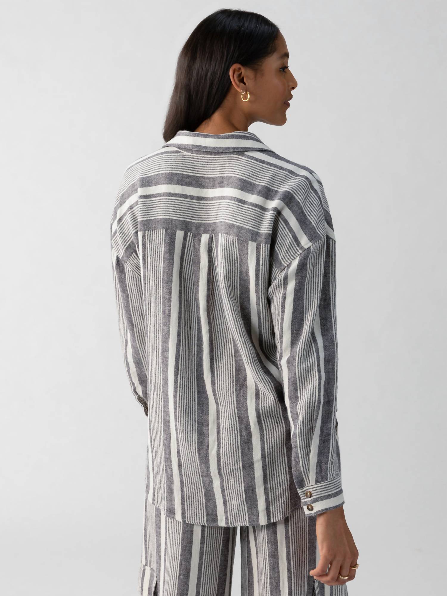 Perfectly tailored and soft to the touch.Multi color stripe. Button down. Relaxed fit. Check pockets. True to size. 52% Linen 48% Rayon.